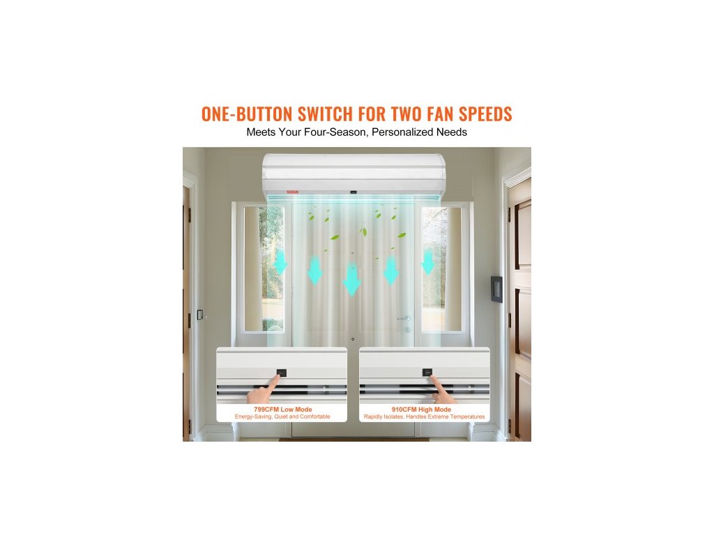 0,9m komerční vnitřní vzduchová clona Super Power 2 rychlosti 1528m³/h, UL certifikované nástěnné vzduchové clony pro dveře, vnitřní ventilátor nad dveře s výkonným koncovým spínačem, snadná instalace, nevyhřívaný povrchVšestranné použití