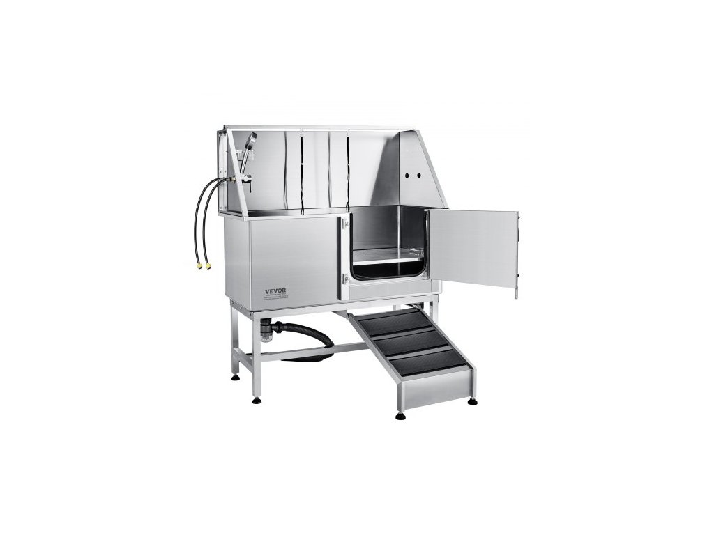 Koupací stanice pro psy 1,27 m s rampou, profesionální nerezová vana na stříhání psů s mýdlovou nádobou, kohoutkem, bohatým příslušenstvím, psí vana pro velké, střední a malé mazlíčky, mycí dřez pro domácí použití vpravoVysoká nosnost 150 kg