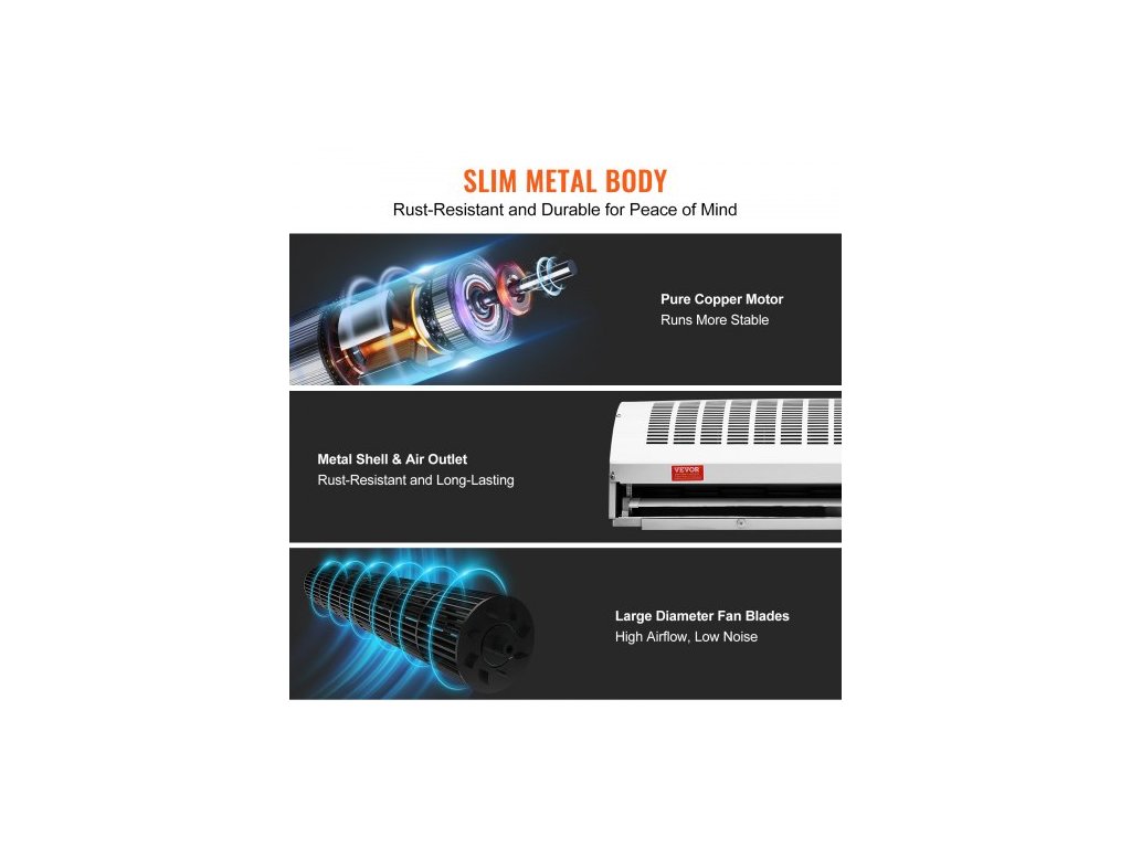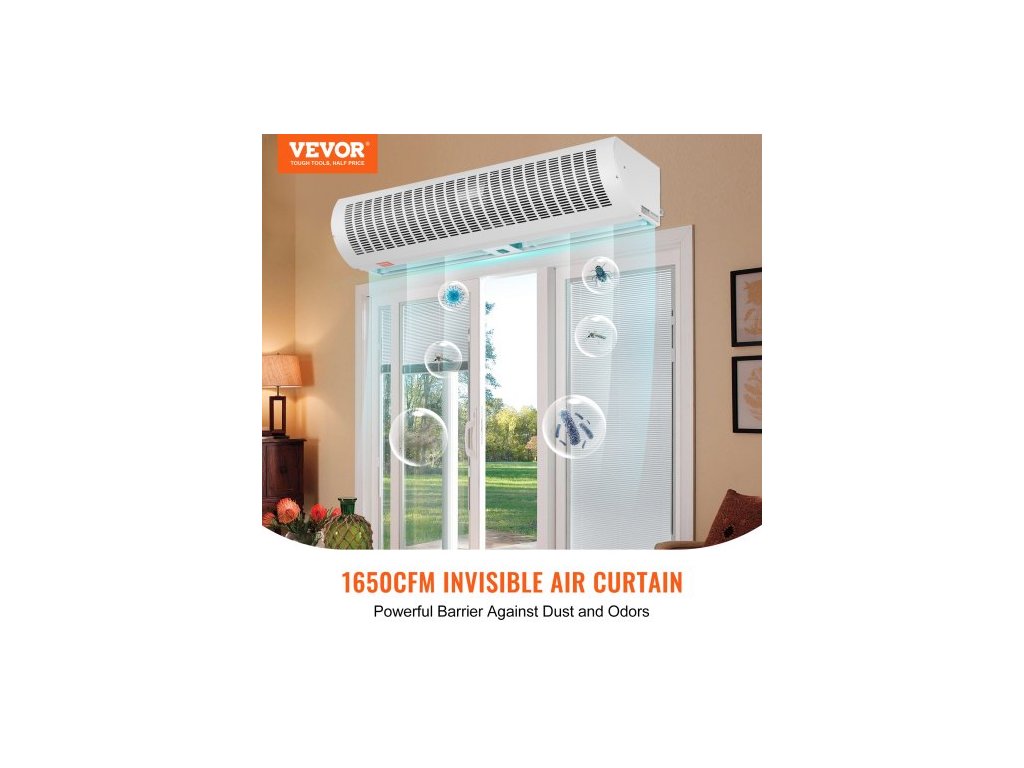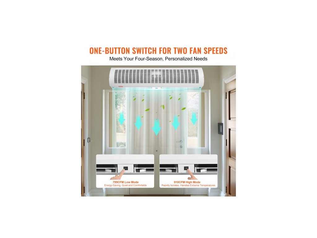 1,2m komerční vnitřní vzduchová clona Super Power 2 rychlosti 2802 m³/h, UL certifikované nástěnné vzduchové clony pro dveře, vnitřní ventilátor nad dveře s výkonným koncovým spínačem, snadná instalace, nevyhřívaný povrchVšestranné použití