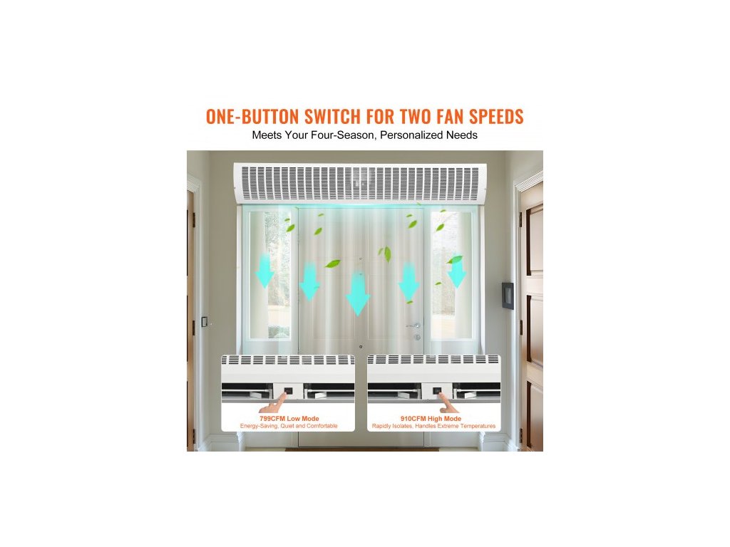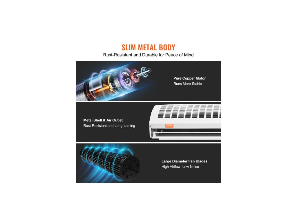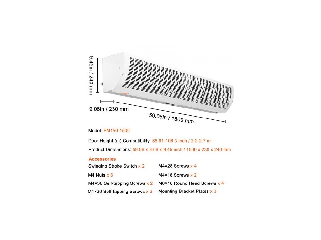 Vhodné pro výšku dveří: 85,83 - 104,33 palce / 2,2-2,7 m, Max. průtok vzduchu (CFM/m³/h): 2100/3566, Napětí: AC220-240V 50/60Hz, Model: FM150-1500-E, Rozměry produktu: 59,06 x 9,06 x 9,45 palce / 1500 x 230 x 240 mm,Barva: Bílá