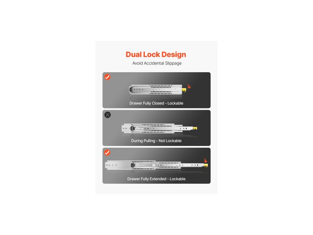 1 pár plně výsuvných výsuvů pro zásuvky 18 20 22 28 30 32 36 38 40 44 48 52 56 60 palců, nosnost 500 liber, uzamykatelné výsuvy pro zásuvky, kuličkové ložisko se zámkem, boční montáž, posuvná lišta pro zásuvky