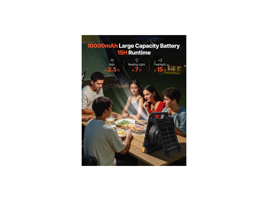 10000mAh dobíjecí solární ventilátor s LED lucernou, 18cm přenosný bezdrátový ventilátor se 4W skládacím solárním panelem, 4 rychlosti a časovač a tichý provoz, napájený z USB baterie pro kempování, stan, pracoviště, kancelářský stůlVenkovní chladicí řešení