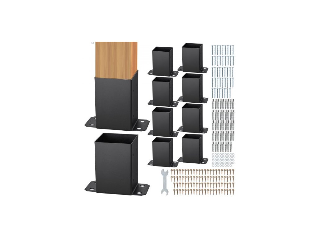 101,6x101,6 mm základny sloupku 10 ks, vnitřní rozměr 91x91 konzole základny sloupku, odolné práškově lakované kotvy na sloupky, matně černé dřevěné konzole pro zábradlí pavilonu, podpěru základny terasy