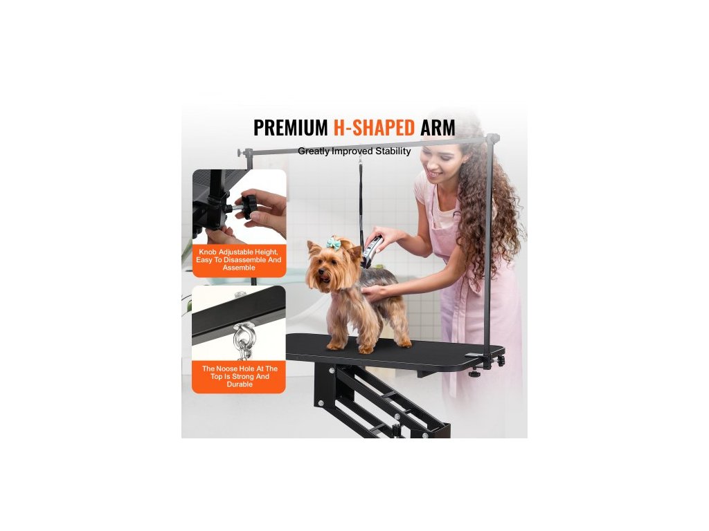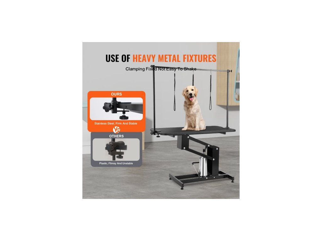 Hydraulický stříhací stůl 109 cm, Odolné rameno pro stříhání psů středních/malých psů, Výškově nastavitelná stanice pro stříhání psů, Protiskluzová deska stolu/stanice pro stříhání psů, Max. nosnost 182 kgOdolný stůl pro stříhání domácích mazlíčků