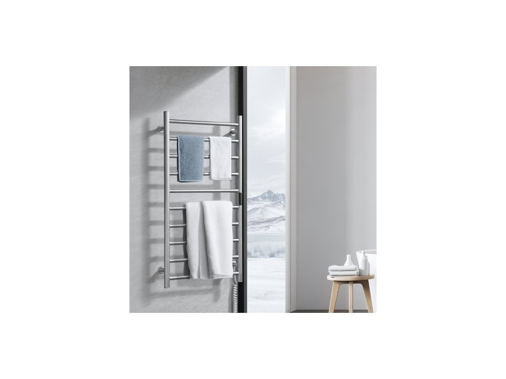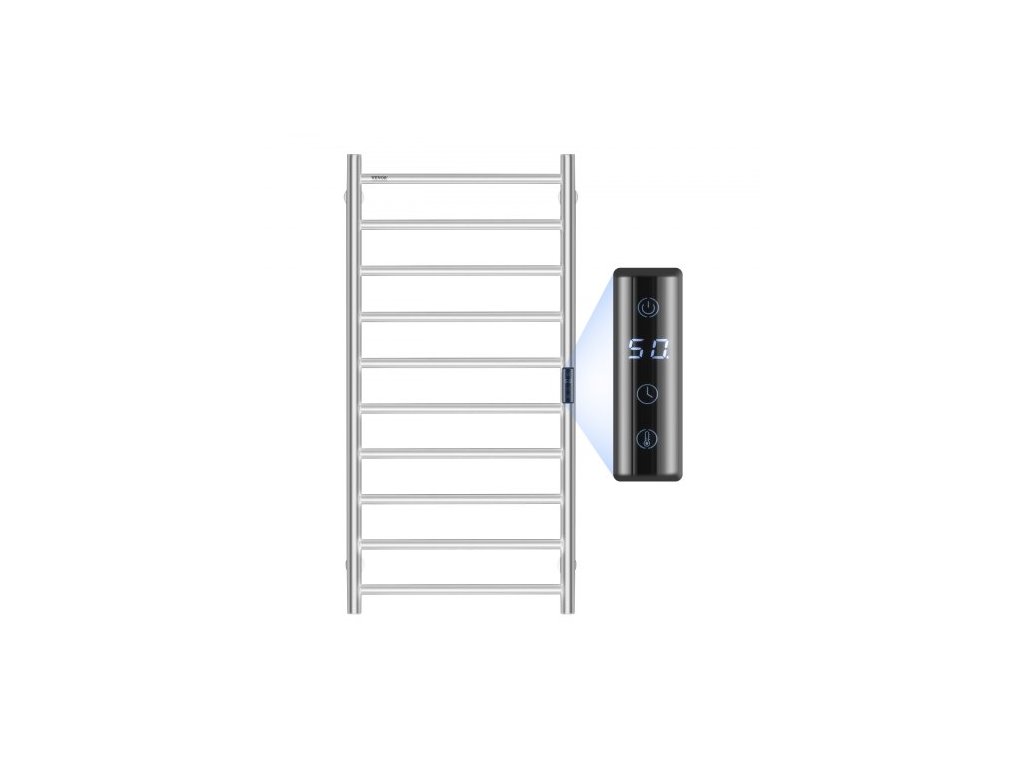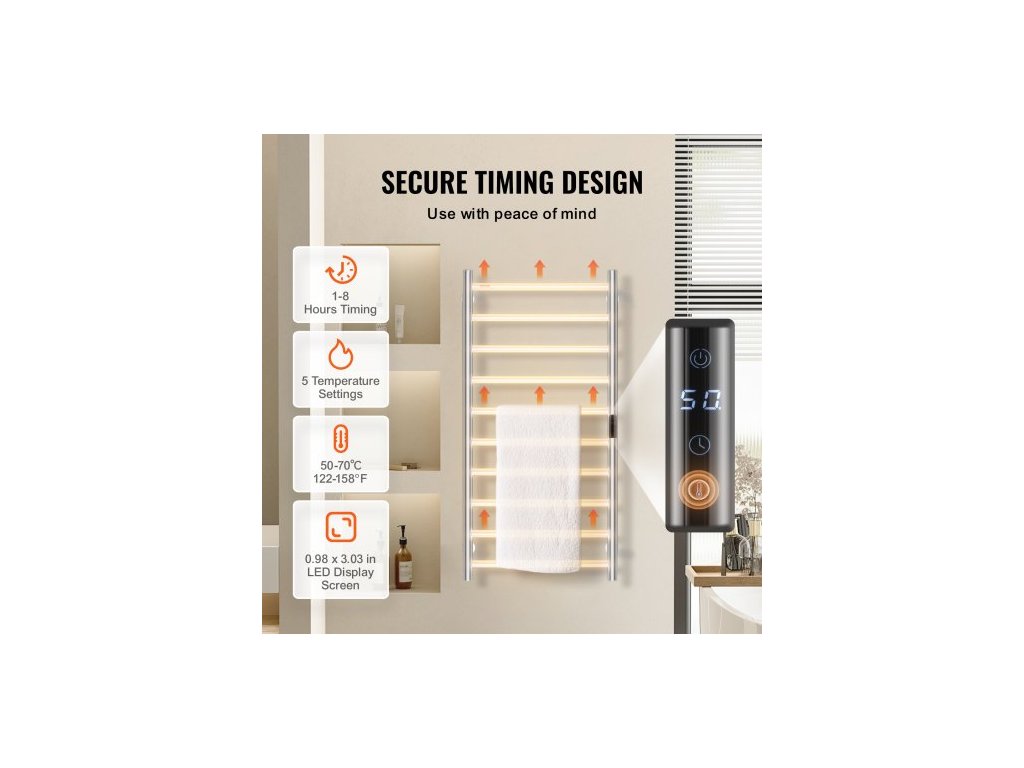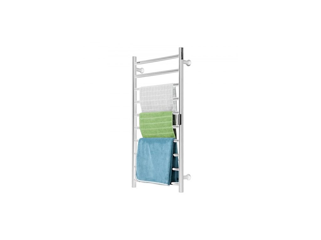 10barový vyhřívaný věšák na ručníky, nástěnný vyhřívaný věšák na ručníky do koupelny, vodotěsný věšák na ručníky s krytím IPX5, časovačem a LED displejem, 5 úrovní nastavitelná teplota, stříbrnýVelkokapacitní ohřev