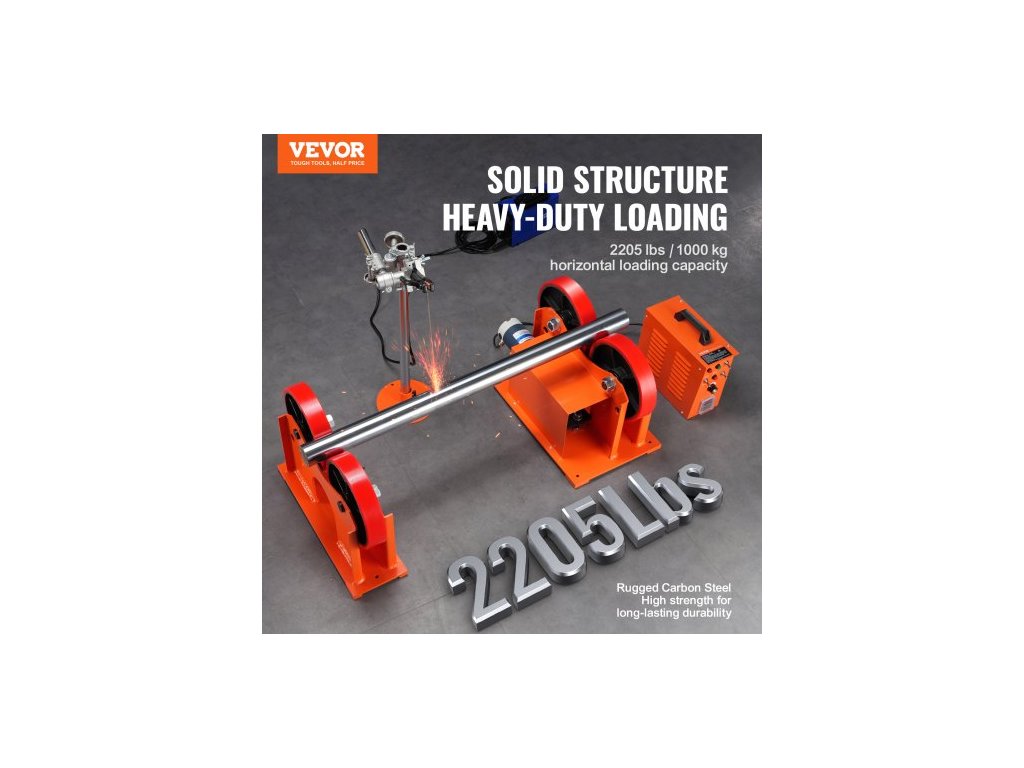 110V soustružnické válce, spojovací válec, zatížení svařovacího soustružnického válce 1000 kg/2205 liber, průměr 25–1400 mm, rychlost otáčení 80–1600 mm/min, rotační svařovací polohovač a stojan svařovacího hořáku pro podporu svařovacího zařízeníRobustní konstrukce