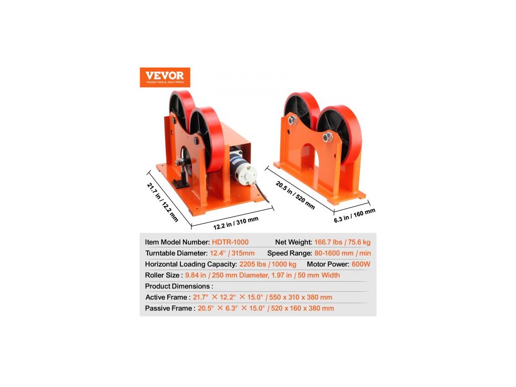 Průměr otočného stolu: 12,4 palce / 315 mm, číslo modelu: HDTR-1000, velikost válce: průměr 9,84 palce / 250 mm, šířka 1,97 palce / 50 mm, výkon motoru: 600 W, rozsah rychlosti: 80–1600 mm/min, hmotnost netto: 166,7 liber / 75,6 kg, horizontální zatížení Nosnost: 1000 kg