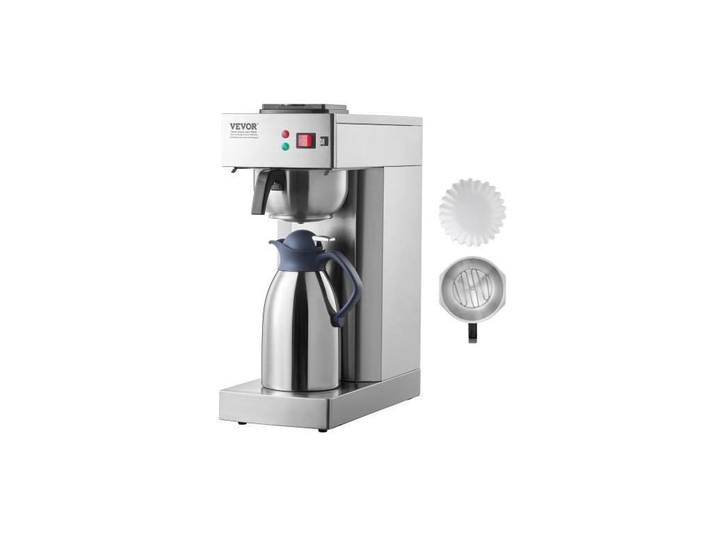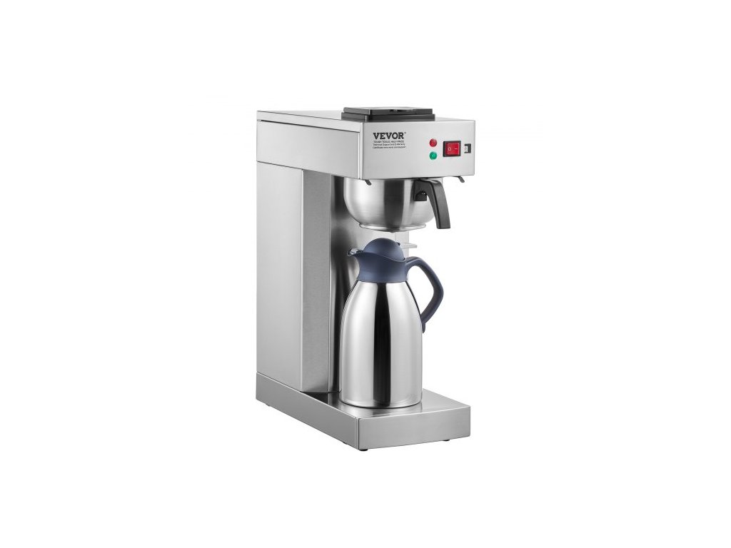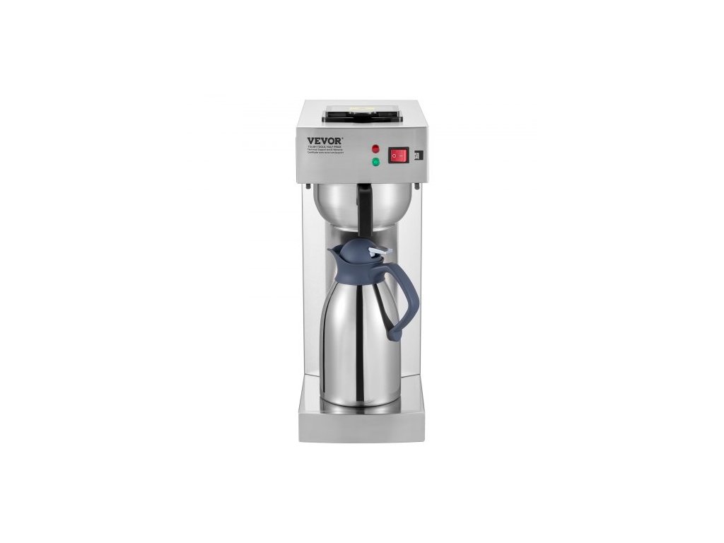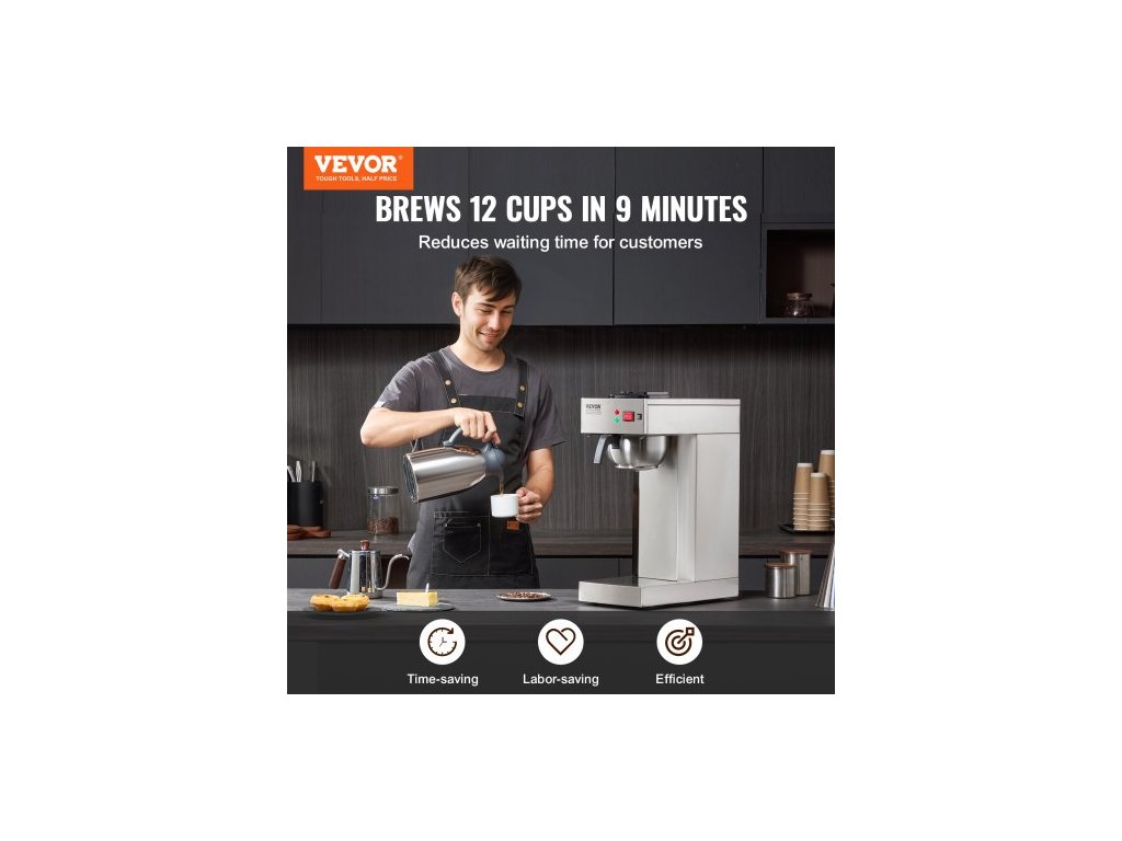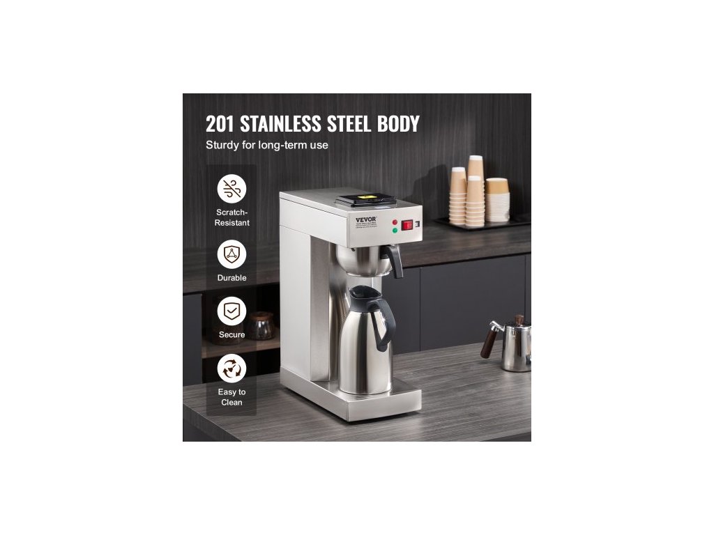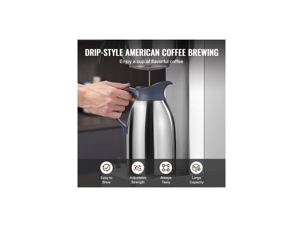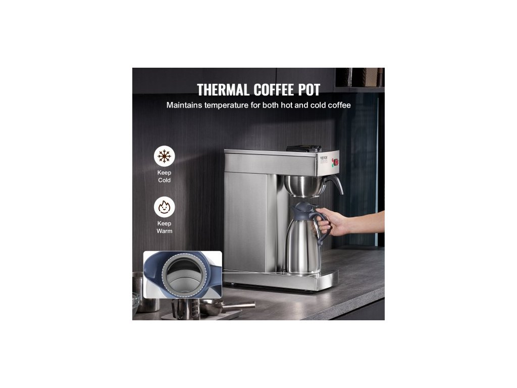 Komerční překapávací kávovar na 12 šálků, kávovar s termokarafou pro udržení teplé nebo studené kávy, nerezový přelévací kávovar pro restaurace, kanceláře, kavárnyEfektivní příprava kávy