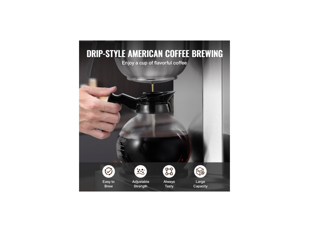 12 šálků komerčního překapávacího kávovaru, kávovar se 3 skleněnými karafami a 3 ohřívacími talíři, nerezový přelévací kávovar pro restauraci, kancelář, kavárnu