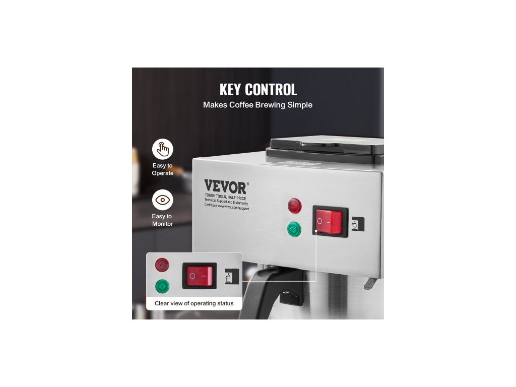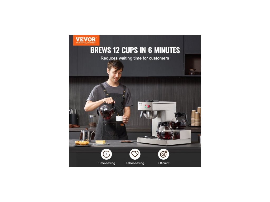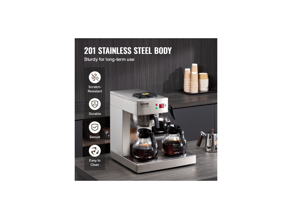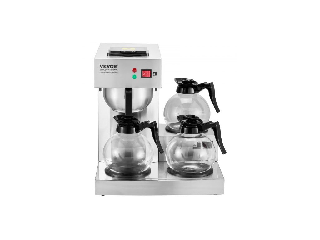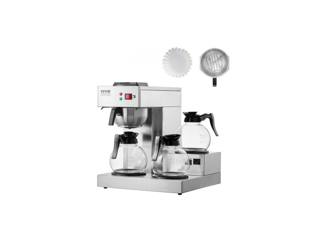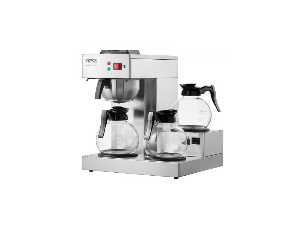Komerční překapávací kávovar na 12 šálků, kávovar se 3 skleněnými karafami a 3 ohřívacími destičkami, nerezový přelévací kávovar s automatickým přívodem vody, pro restaurace, kanceláře, kavárnyEfektivní příprava kávy