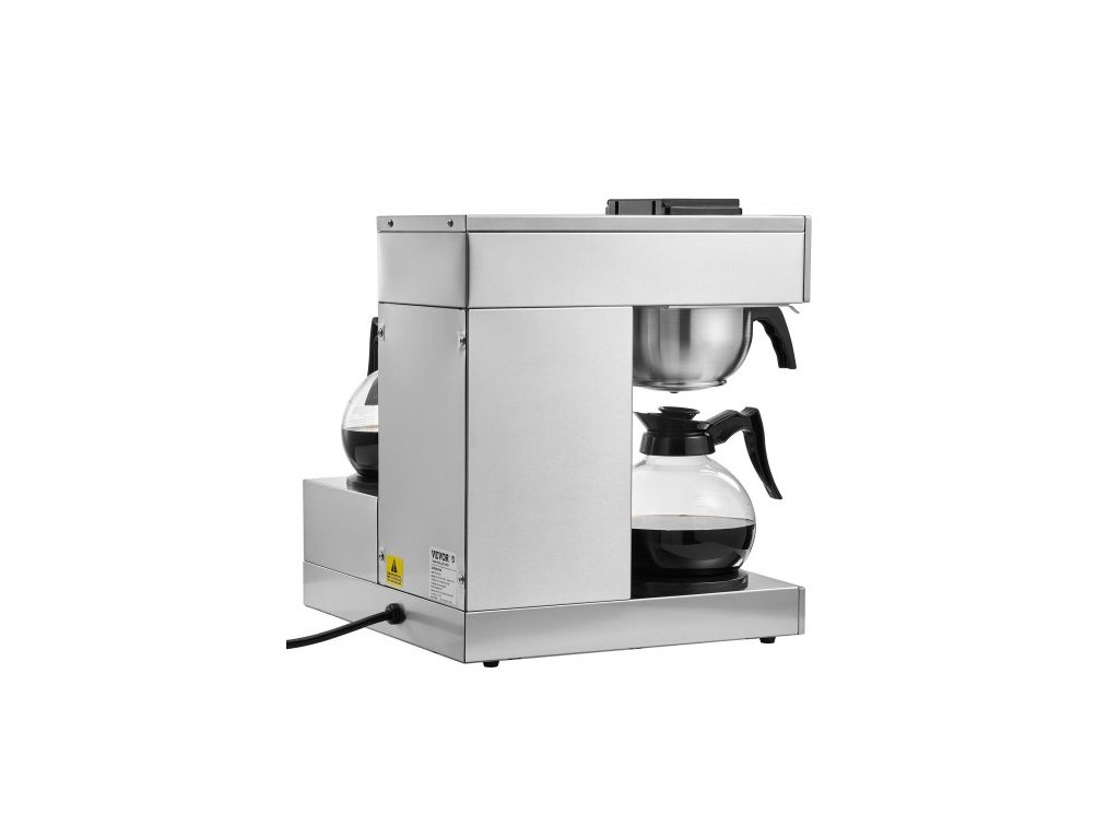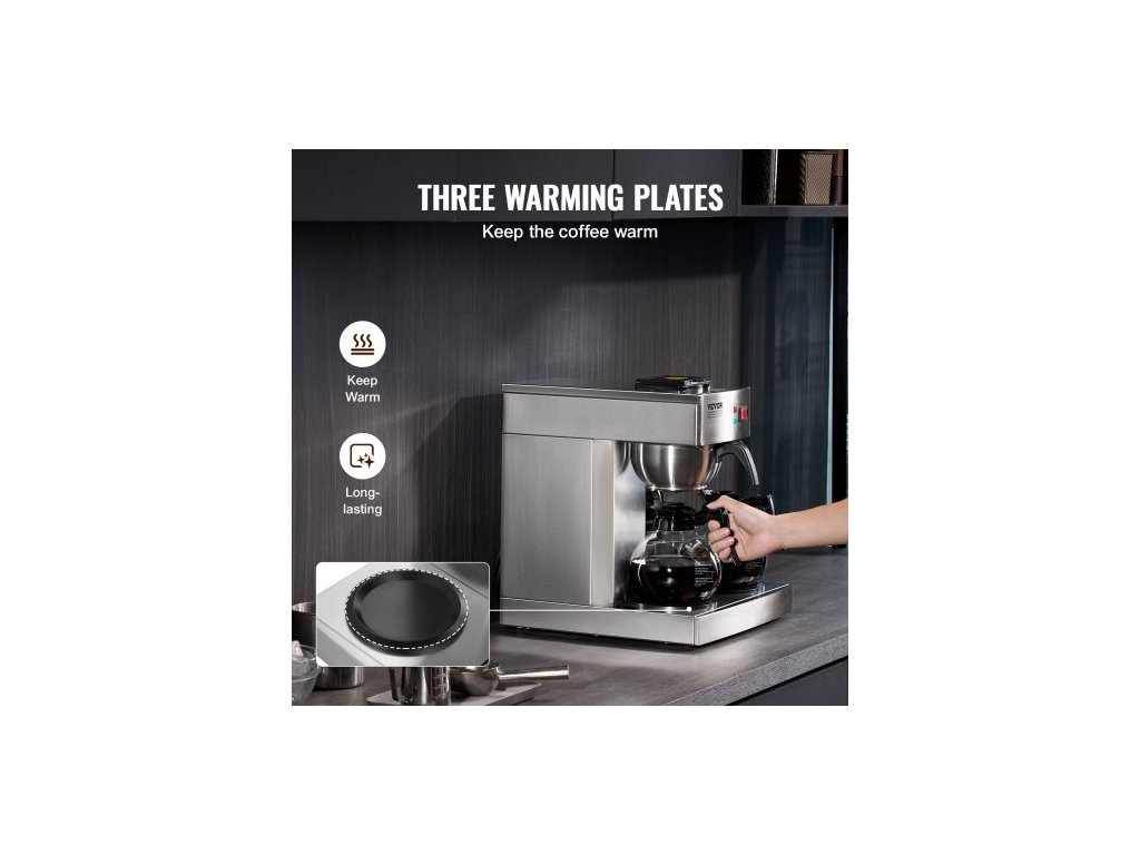 12 šálků komerčního překapávacího kávovaru, kávovar se 3 skleněnými karafami a 3 ohřívacími talíři, nerezový přelévací kávovar s automatickým přívodem vody, pro restauraci, kancelář, kavárnu
