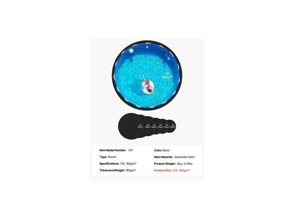 12 stop kulatá podložka pod bazén, podložka pod bazén pro nadzemní bazény, extra silná bazénová rohož, zabraňuje propíchnutí, podložka z recyklovaného geotextilie, prodloužení životnosti fólieOchraňte fólii svého bazénu