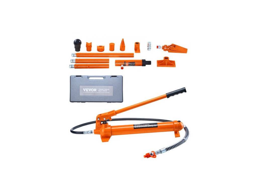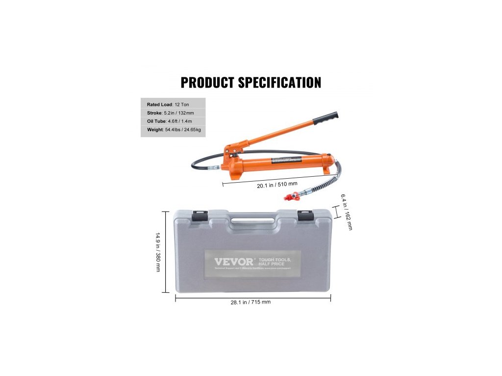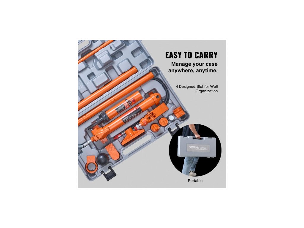 Sada 12 Ton Porta Power Kit, přenosný hydraulický zvedák s olejovou hadicí 1,4 m, sada na opravu rámu karoserie s úložným pouzdrem pro opravy automobilů, nákladních automobilů a farmářských vozidelBez úniku