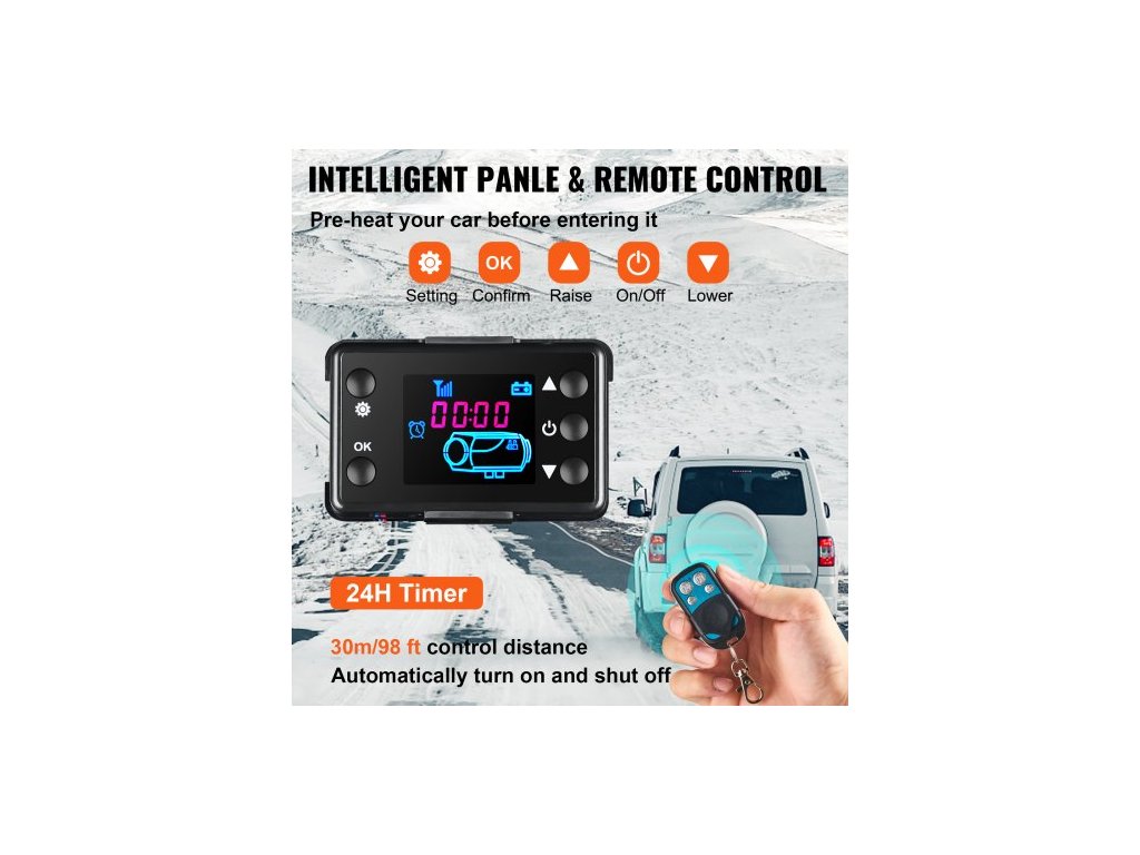12V 5KW dieselové topení, univerzální vzduchové dieselové topení s LCD spínačem a dálkovým ovládáním, dieselové vzduchové topení, tlumič výfuku pro parkovací topení, dieselové topení pro nákladní automobily, automobily, lodě, karavany, SUV (1 otvor)Rychlé vytápění a nízká hlučnost