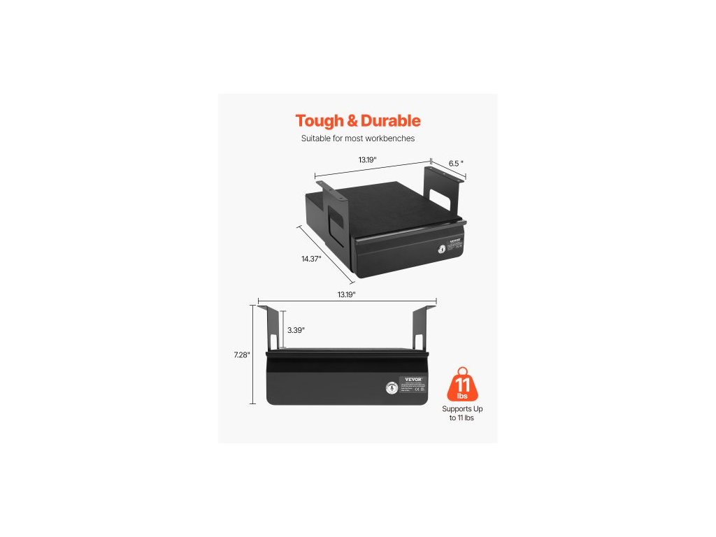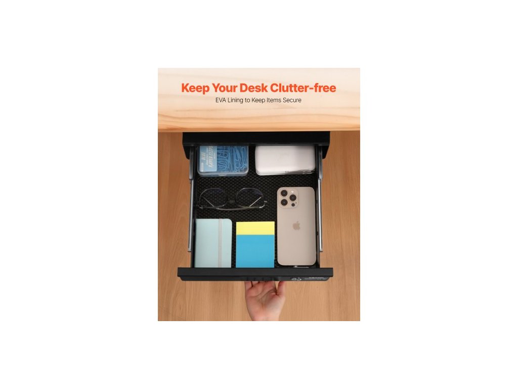 13" široká zásuvka pod stůl s výsuvnou zásuvkou, upevnění výsuvné zásuvky pod stůl, skrytý organizér na úložný prostor na stole, uzamykatelná zásuvka na tužky pod stůl pro pracovní stanici vsedě i vestoje, 14x13x7 palců, bezpečné a proti poškrábání odolné okraje, ochranná vložka z EVA, povrch odolný proti korozi, všestranná kompatibilita, promyšlený bezpečnostní design, úložný prostor na horní polici, počet vrstev zásuvek: jednoduchý, uzamykatelný design: uzamykatelný, vnitřní výška zásuvky: 2,36 palce / 60 mm, barva: černá, celková délka zásuvky: 13 palců / 330,2 mm, číslo modelu položky: CT-2, hmotnost výrobku: 11,24 lbs / 5,1 kg, Vnitřní hloubka zásuvky: 9,6 palce / 243,8 mm, Rozměry výrobku: 14,37 x 13,19 x 7,28 palce / 365 x 335 x 185 mm, Vnitřní délka zásuvky: 12,6 palce / 320 mm, Hlavní materiál: Ocel Q235Doplňkové parametry