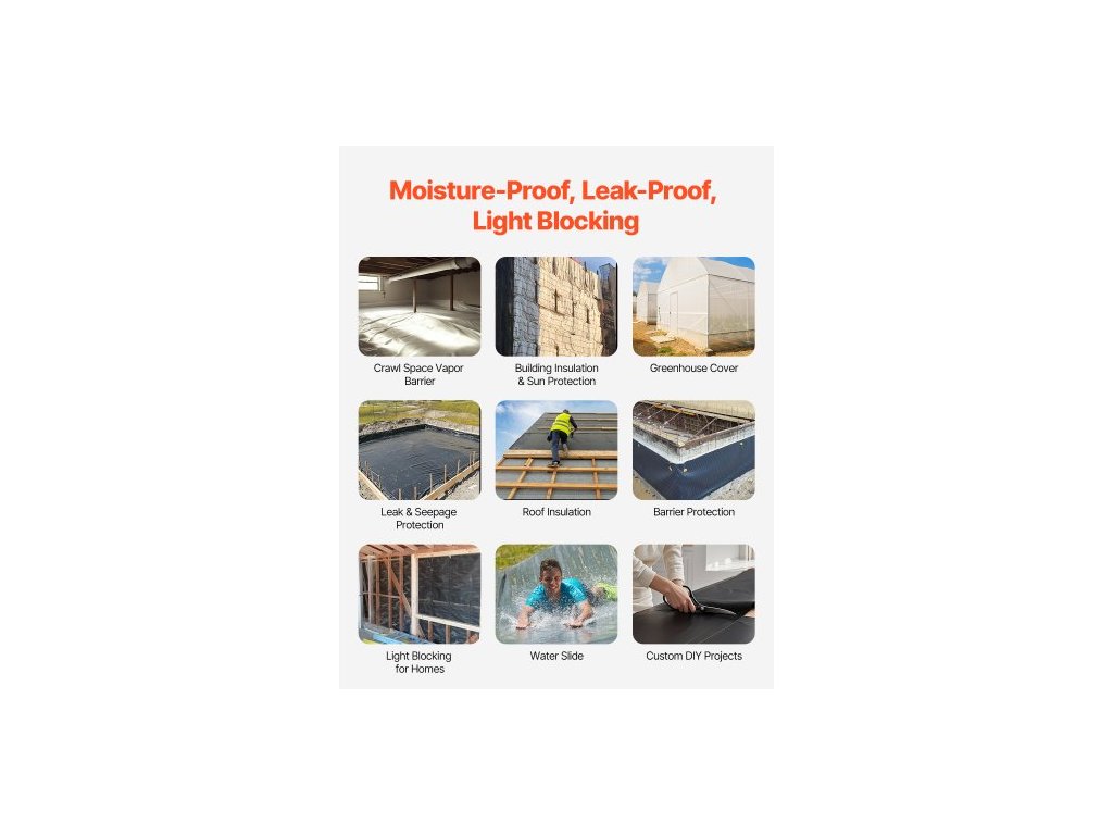 14 Mil plastová fólie pro vysoké zatížení 10' x 100', silná role plastové fólie, plastová plachta na malíře, parozábrana do prostoru pod podlahou, černobílá, oboustranná, víceúčelováVelkoformátové provedení