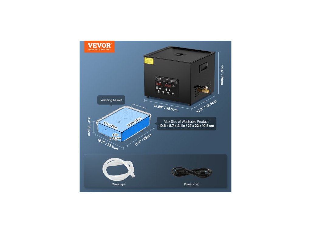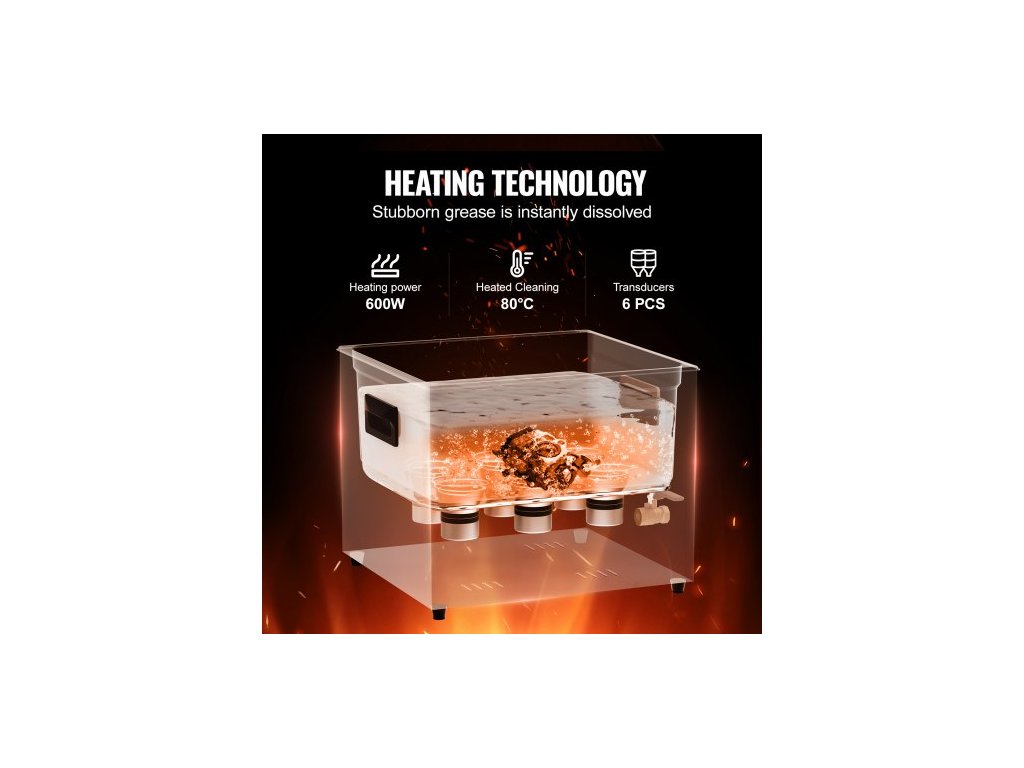 Ultrazvukové převodníky: 6 ks,Rozměry produktu: 13,98 x 12,80 x 11,42 palce / 355 x 325 x 290 mm,Hladina hluku: ≤75 dB,Délka napájecího kabelu: 1,5 m,Objem: 15L,Model: KZ-F15,Doba regulace: 0-30 minut,Hmotnost produktu: 8,6 kg,Frekvence: 40kHz,Teplotní rozsah: 0–80 °C, ultrazvukový výkon: 360 W, topný výkon: 600 W, rozměry vnitřní nádrže z nerezové oceli: 330 x 300 x 150 mm (tloušťka stěny: 1,0 mm)