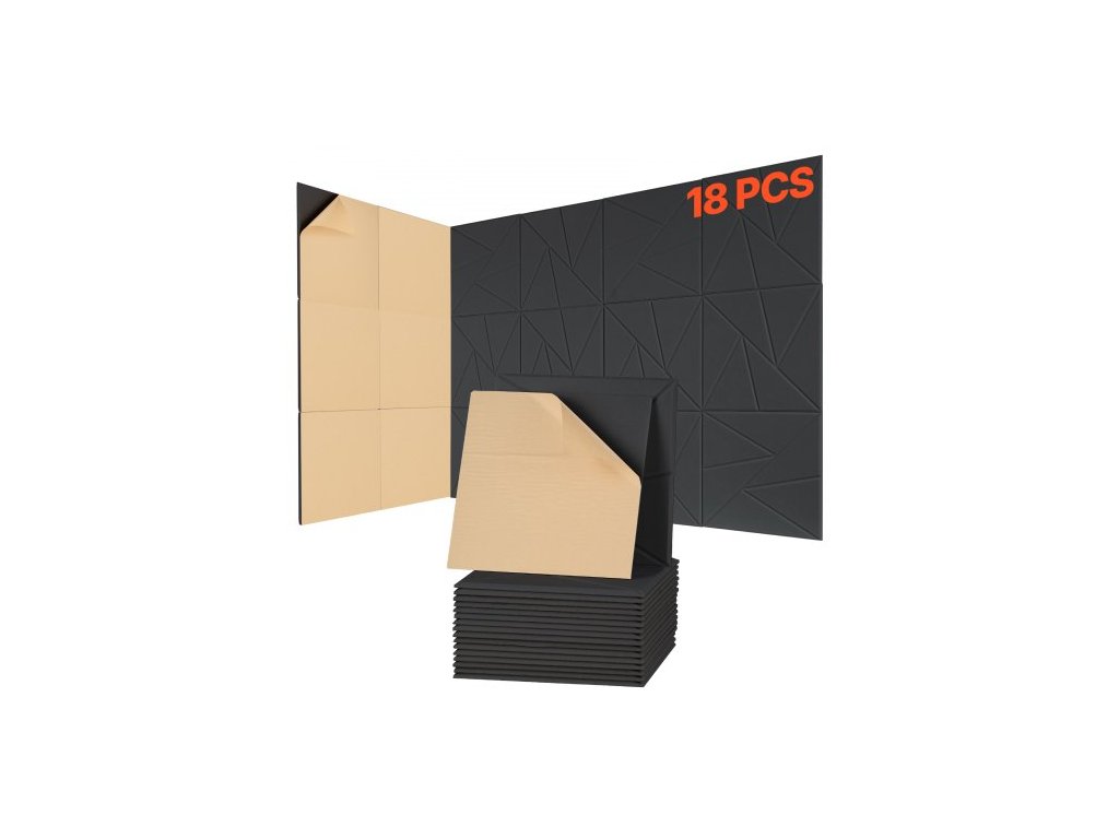 18 kusů akustických panelů se samolepicí fólií, zvukotěsné pěnové panely 11,8 x 11,8 x 0,4 palce, polyesterové vlákno, zvukotěsné stěnové panely s vysokou hustotou, pro domácnost, studio, kancelář, kino, černé