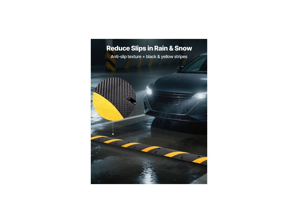 1830MM gumový zpomalovací prah, 2 kanály, těžký zpomalovací prah pro silniční dopravu, nosnost 9 979 kg/náprava, nájezdová rampa s ochranou kabelů s rozpěrnými šrouby, pro asfaltové betonové a štěrkové příjezdové cesty, 1 baleníProtiskluzový povrch