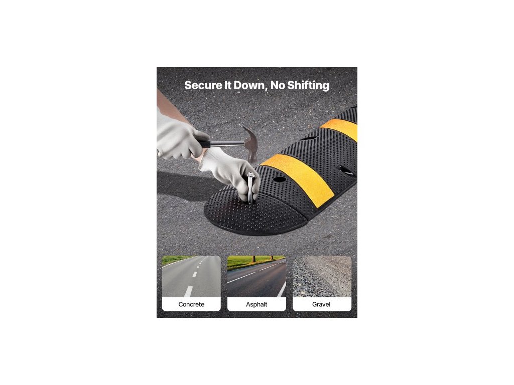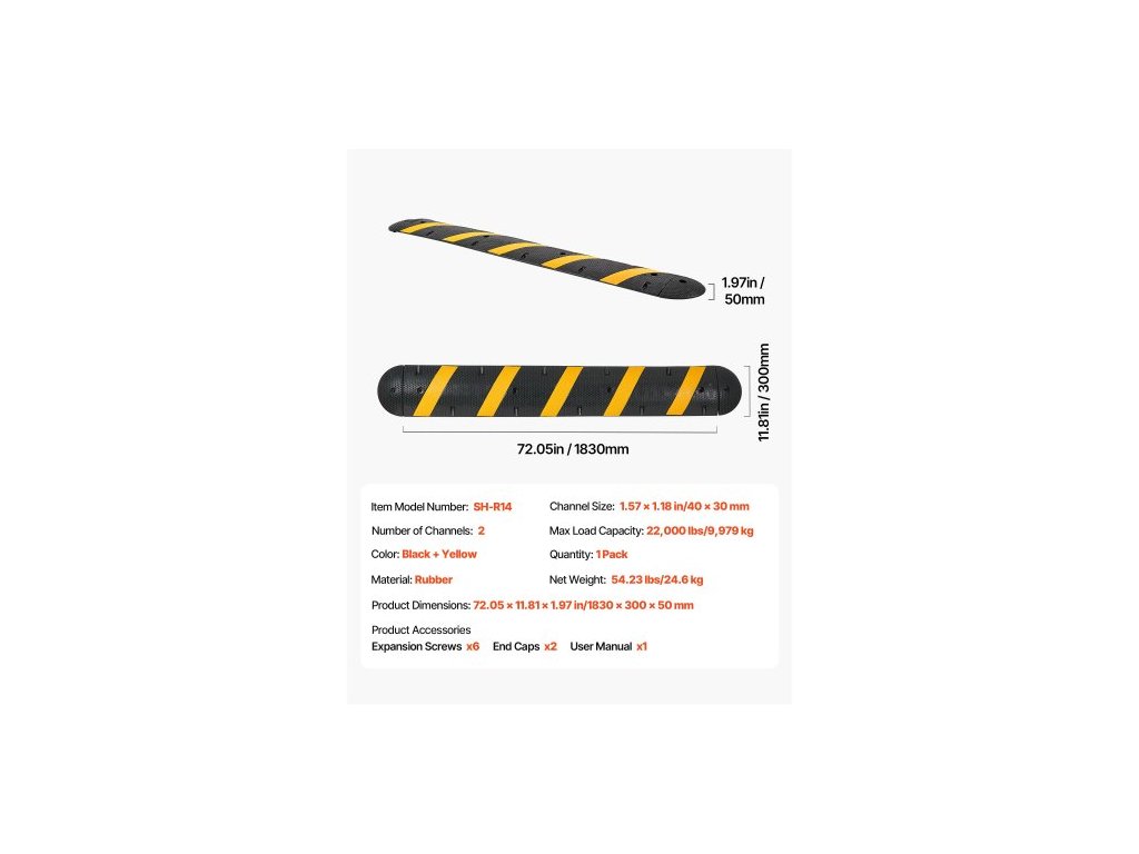 1830MM gumový zpomalovací prah, 2 kanály, těžký dopravní zpomalovací prah, nosnost 9 979 kg/nápravu, nájezd s ochranou kabelů s rozpínacími šrouby, pro asfaltový beton, štěrkový příjezd, 1 balení