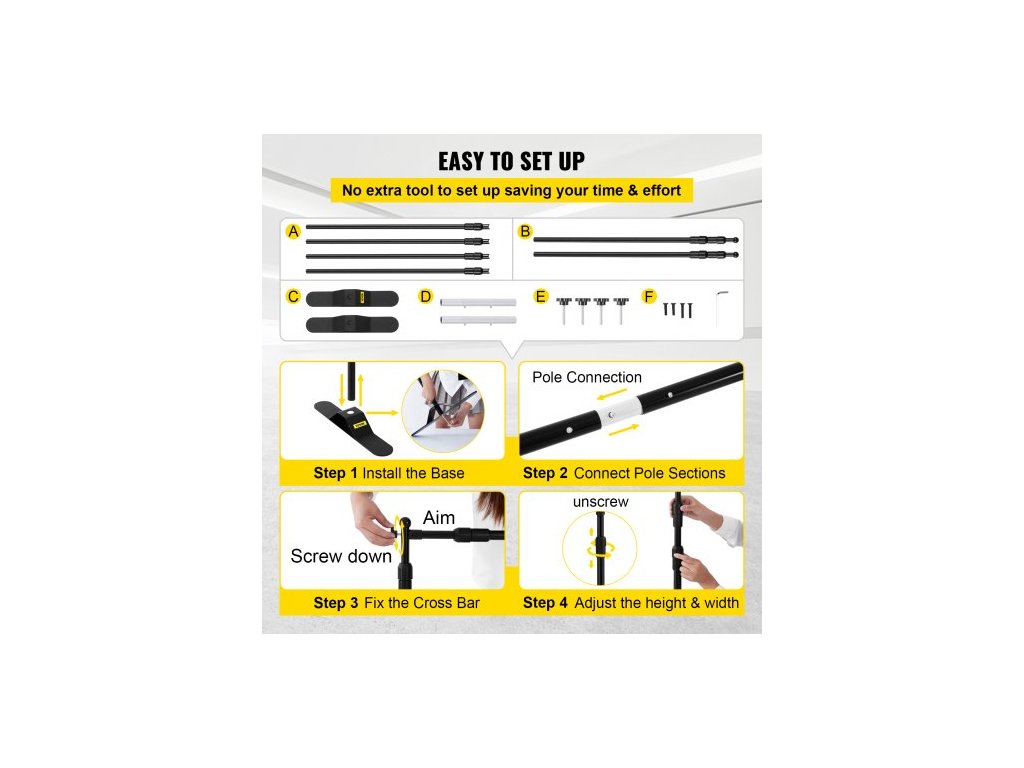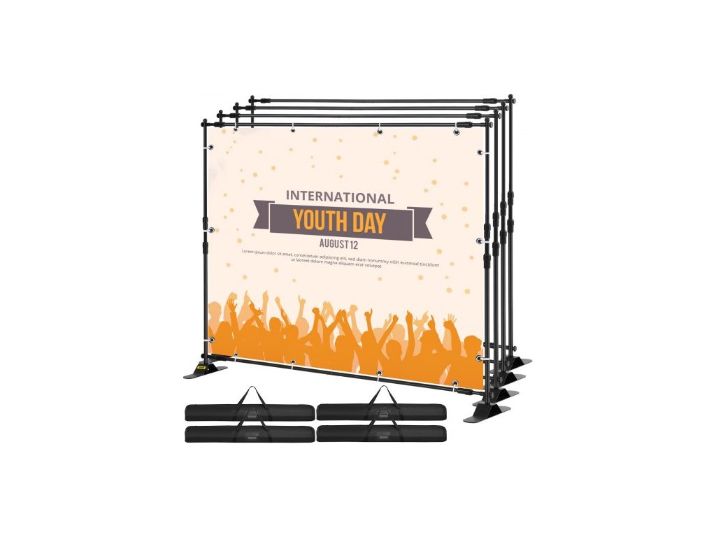 2,44m stojan na banner, nastavitelný teleskopický, lehký, nástěnný stojan na veletrhy, balení 4 ksNastavitelná výška a šířka