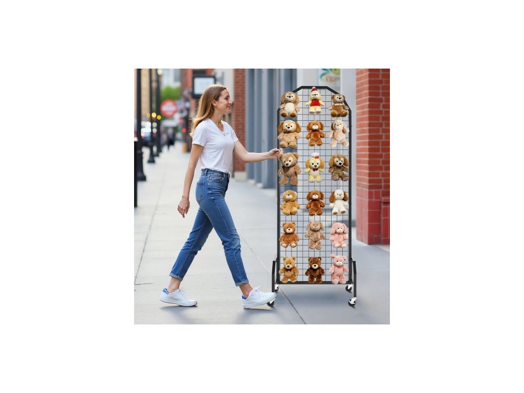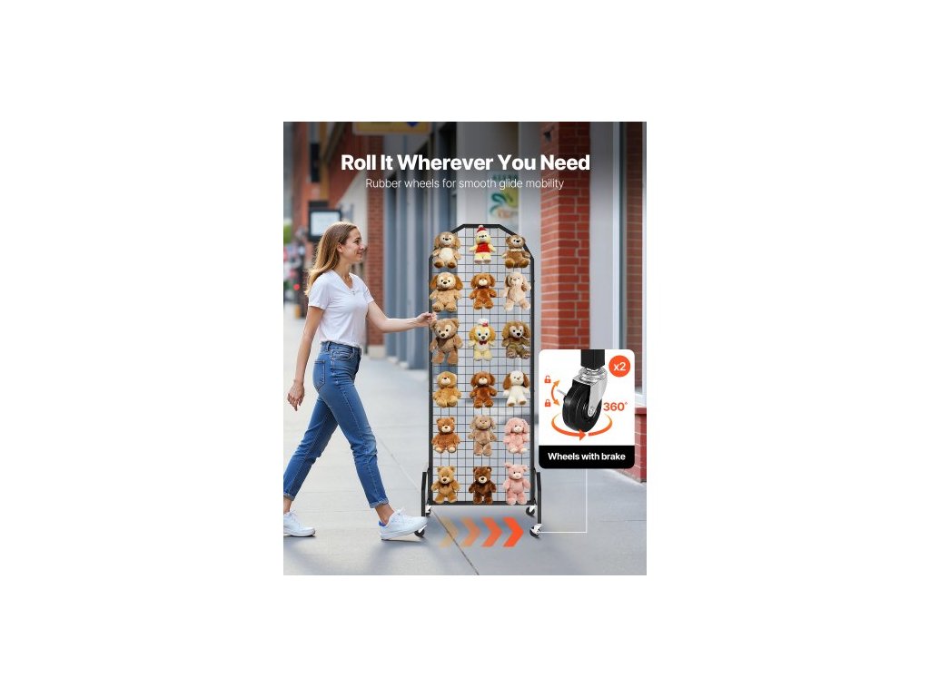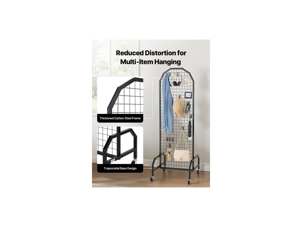 2 balení mřížkových nástěnných panelů, drátěný mřížkový stojan 600 x 1640 mm, pohyblivá police na umění s kolečky a 20 háčky, černá mřížková stěna z uhlíkové oceli pro řemeslné výstavy, dekorace, úložný prostor, nástěnky20 háčků na předměty