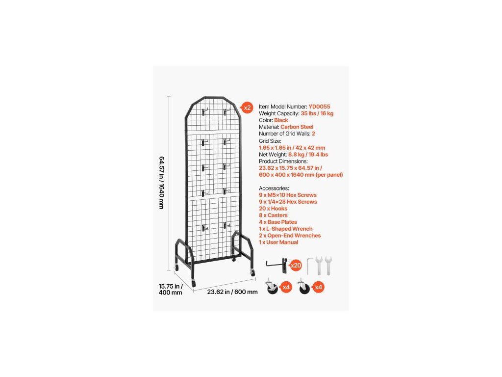 Počet mřížkových stěn: 2,Nosnost: 16 kg,Rozměry mřížky: 42 x 42 mm,Barva: Černá,Číslo modelu položky: YD0055,Počet mřížkových panelů: 6 ks,Materiál: Uhlíková ocel,Rozměry výrobku: 600 x 400 x 1640 mm (na panel), Čistá hmotnost: 8,8 kg / 19,4 lbs