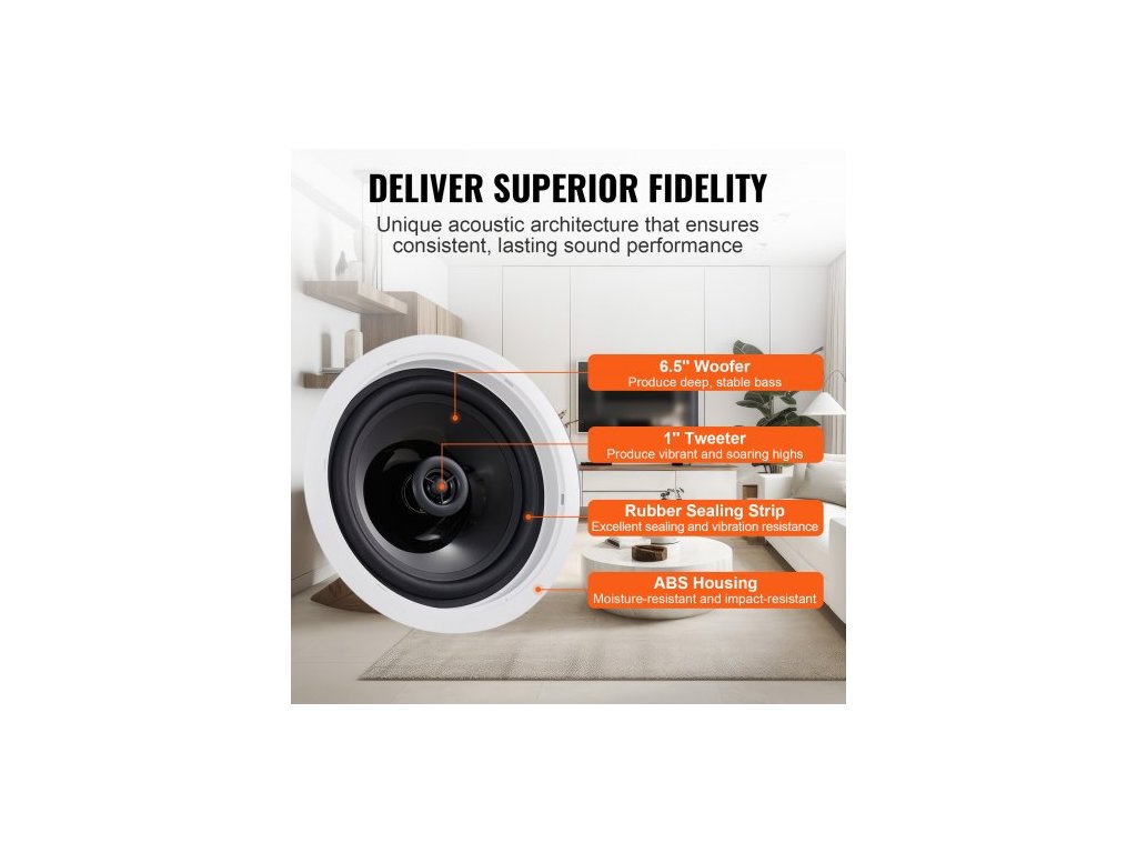 2 ks 6,5"/16,5 cm Bluetooth stropní reproduktory 150W pro zapuštěnou montáž do zdi2 ks 6,5palcových Bluetooth stropních reproduktorů