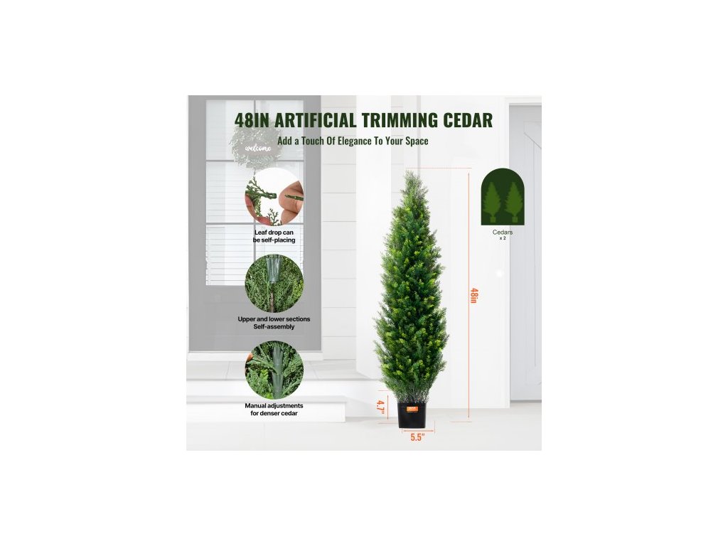 2 kusy umělé rostliny z cedru, 121,9 cm, umělá rostlina, dekorace do interiéru i exteriéruRealistické a přírodní