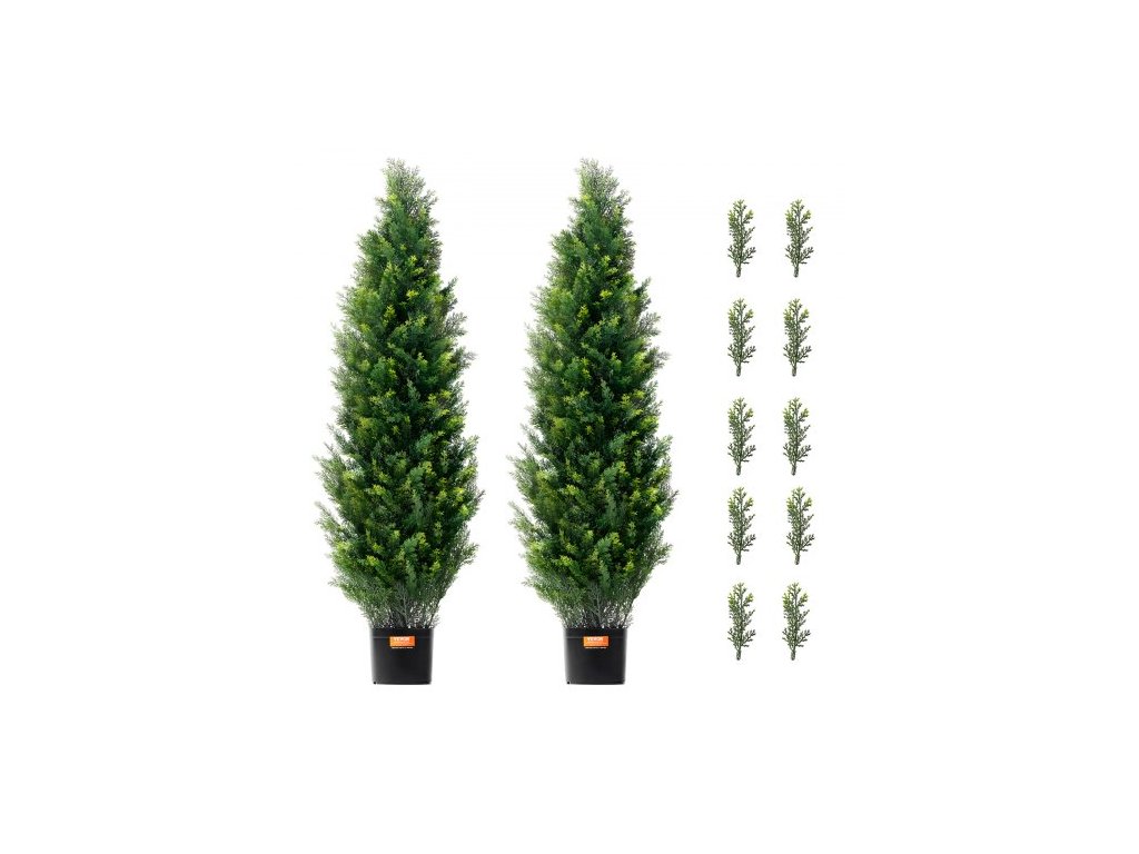 2 kusy umělých rostlin z cedru, 121,9 cm, UV dekorace pro vnitřní i venkovní použití