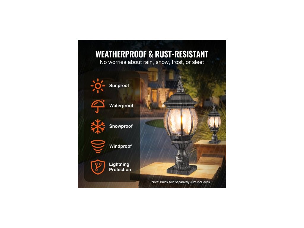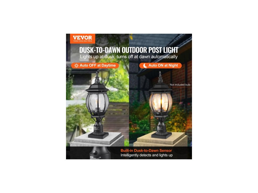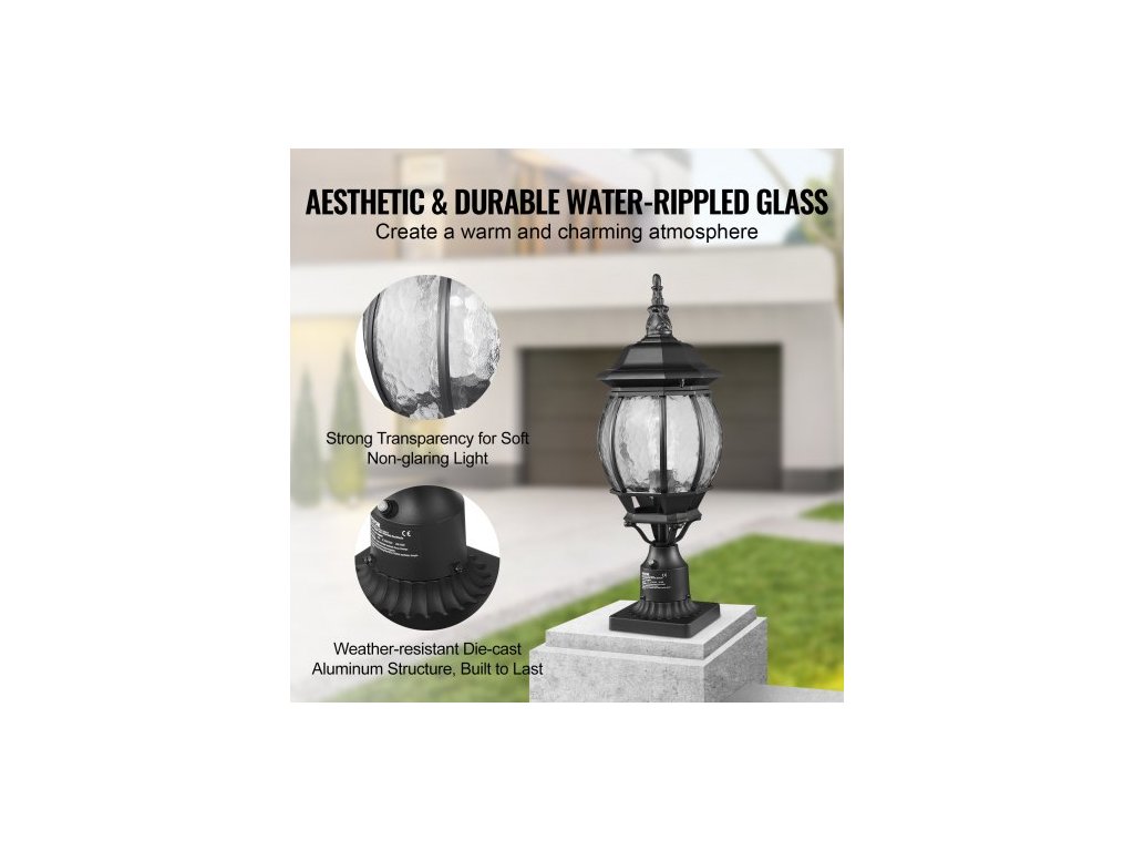 Venkovní sloupové svítidlo Dusk to Dawn, 530 mm, vodotěsné svítidlo na sloup s 3,5palcovou základnou, skleněné stínidlo, bleskotěsné venkovní sloupové svítidlo pro terasu a zahradní cestuElegantní a odolné