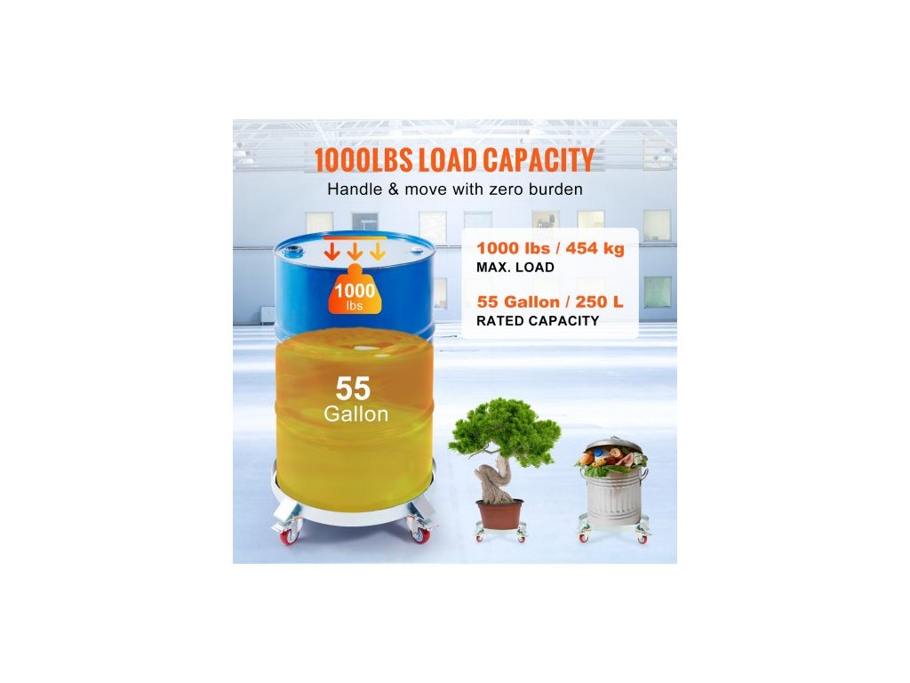 Jmenovitý objem: 55 galonů / 250 l, max. Zatížení: 454 kg, Barva: Stříbrná, Materiál univerzálního kola: Q235+PA6, Montážní výška univerzálního kola: 105 mm, Materiál: Uhlíková ocel 3,5 mm, Průměr univerzálního kola: Ø 76 mm, Rozměry výrobku: 725 x 160 mm, Vnitřní hloubka: 50 mm, Životnost: 2 roky, Šířka univerzálního kola: 30 mm, Vnitřní průměr: 607 mm, Číslo modelu položky: 55-1000-1, Povrchová úprava: Galvanizace, Čistá hmotnost: 8 kg