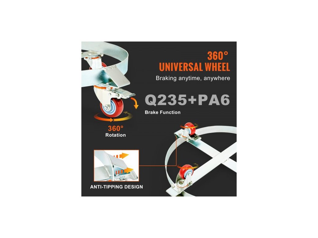 208,2 l vozík na sudy s vysokou nosností, nosnost 453,6 kg, vozík na sudy, ruční vozík s ocelovým rámem, 4 otočná kolečka, pro manipulaci se sudy ve skladuOdolnost vůči tlaku