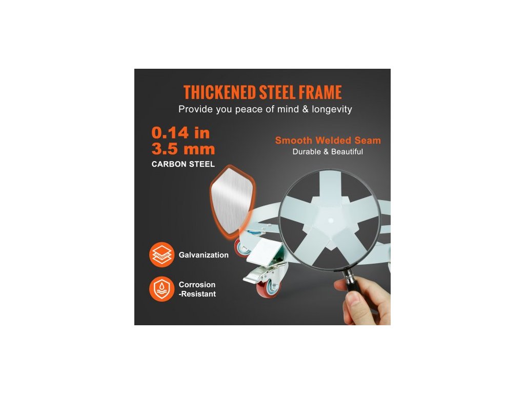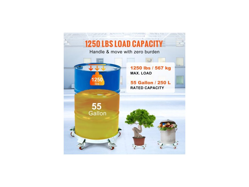 Jmenovitý objem: 55 galonů / 250 l, max. Nosnost: 567 kg, Barva: Stříbrná, Materiál univerzálního kola: Q235+PA6, Montážní výška univerzálního kola: 105 mm, Materiál: Uhlíková ocel 3,5 mm, Průměr univerzálního kola: Ø 76 mm, Rozměry výrobku: 730 x 160 mm, Vnitřní hloubka: 50 mm, Životnost: 2 roky, Šířka univerzálního kola: 30 mm, Vnitřní průměr: 607 mm, Číslo modelu položky: 55-1250-1, Povrchová úprava: Galvanizace, Čistá hmotnost: 11 kg