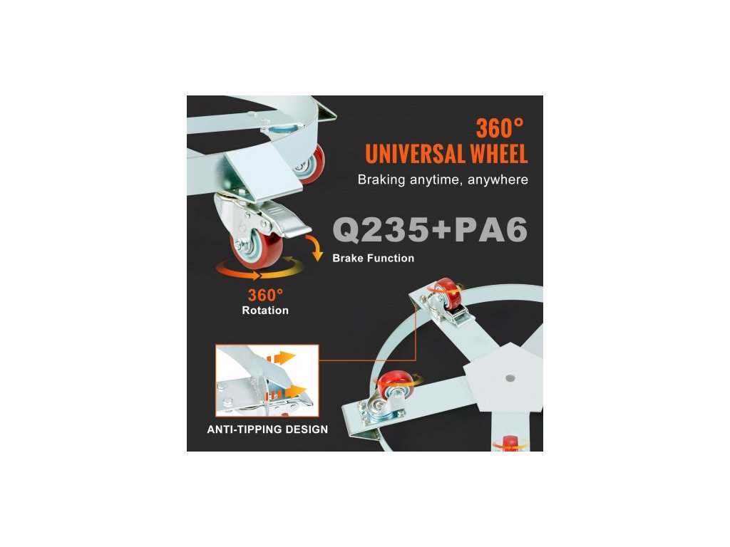 208,2 l vozík na sudy, nosnost 567 kg, vozík na sudy, ruční vozík s nevratnou konstrukcí a ocelovým rámem, 5 otočných koleček, pro manipulaci se sudy ve skladuOdolnost vůči tlaku