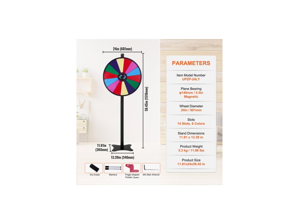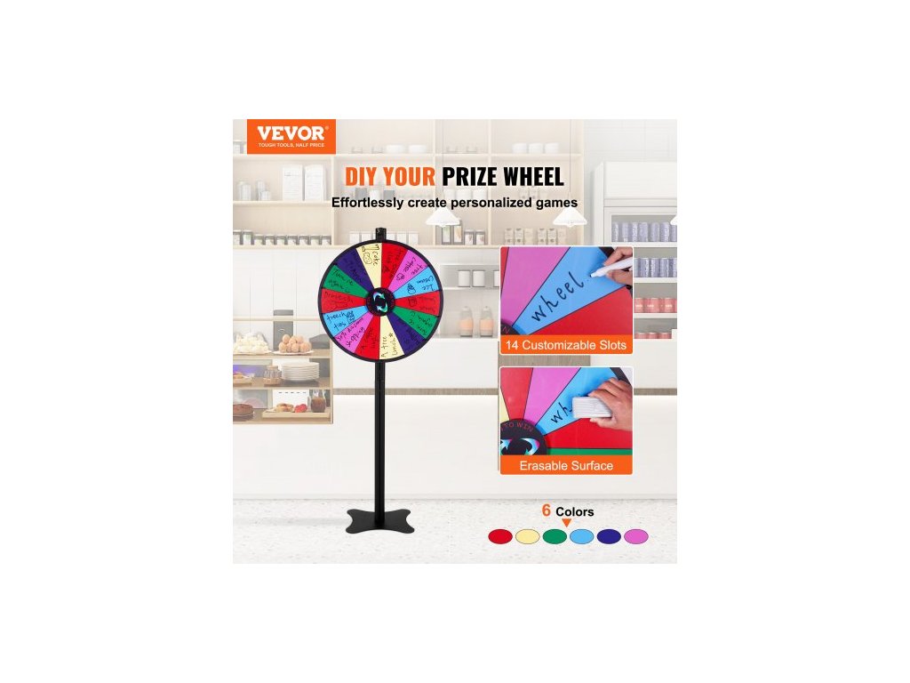24palcové rotující kolo na výhry, rotující kolo se 14 sloty, ruletové kolo se suchým mazáním a 2 fixy, stolní nebo podlahové, hry s výhrou štěstí na večírcích, hospodách, veletrzích a karnevalech
