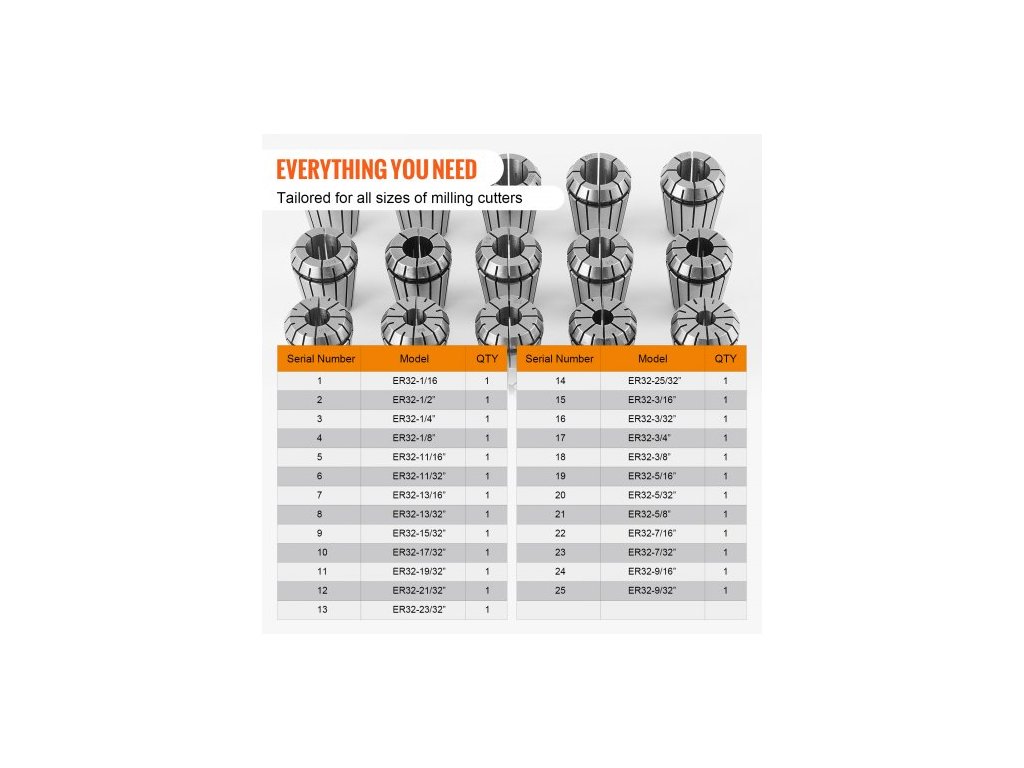 25dílná sada kleštin ER32, 1/16''-13/16'', sada pružinových kleštin ER32, upínací nástroj pro soustruh TIR 0,0006"/15 μm s 25 označenými úložnými boxy, pro CNC gravírovací stroj, frézku, soustruh, vrtačkuKompletní specifikace