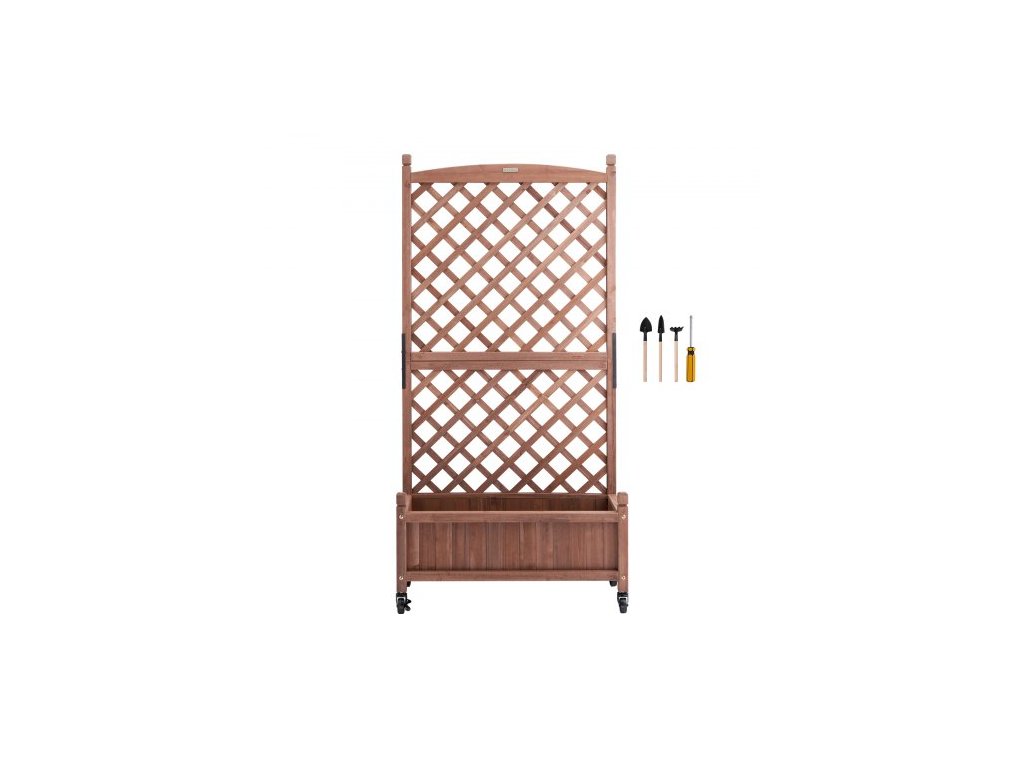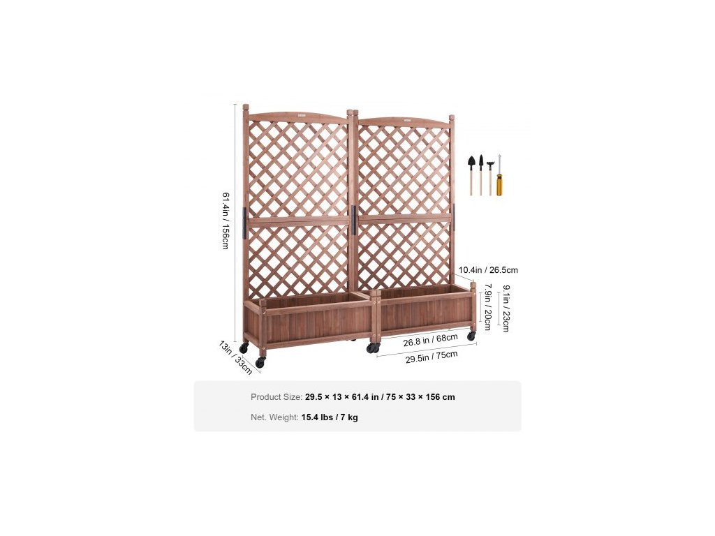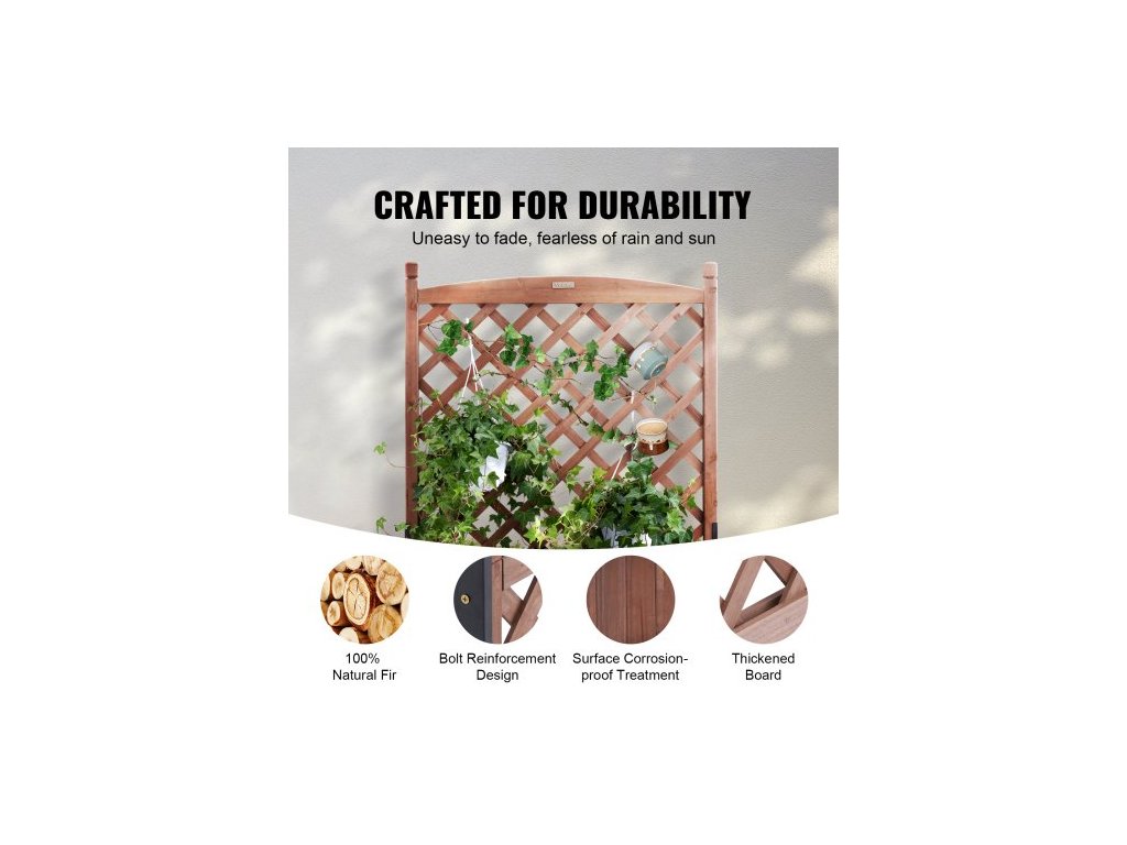 Vyvýšený záhon 2 ks s treláží, venkovní vyvýšené dřevěné květináče 152,4 x 33 x 156 cm s drenážními otvory, volně stojící truhlík s treláží pro popínavé rostliny a květiny v zahradě, na terase nebo balkonuRozdíl v kvalitě
