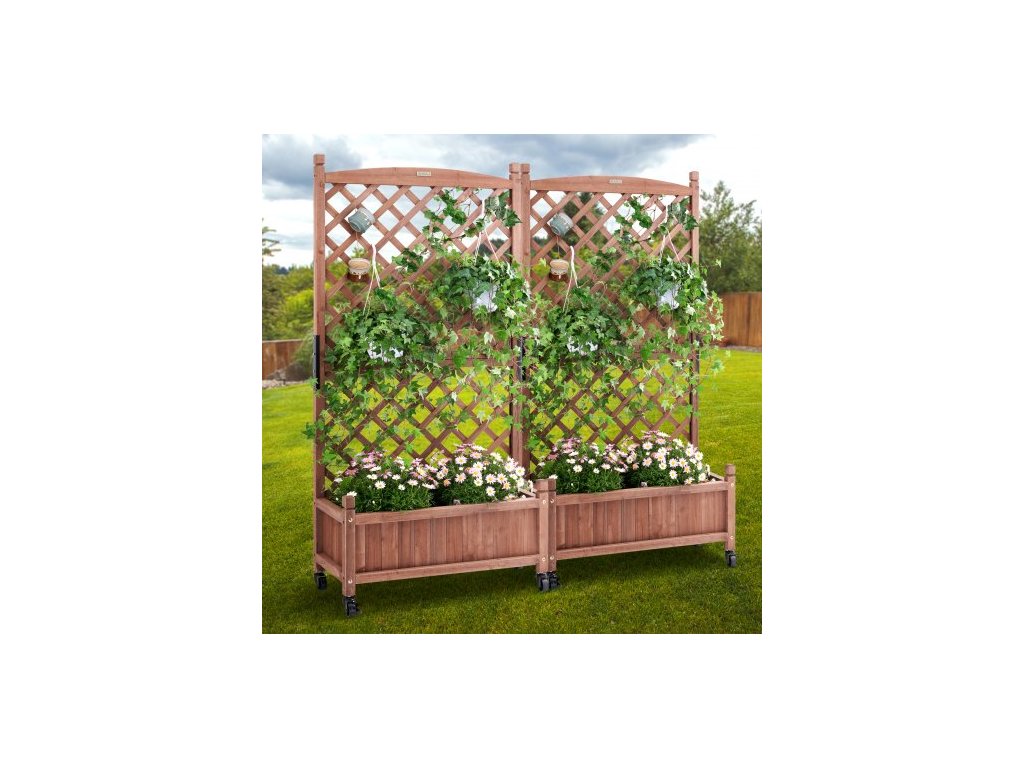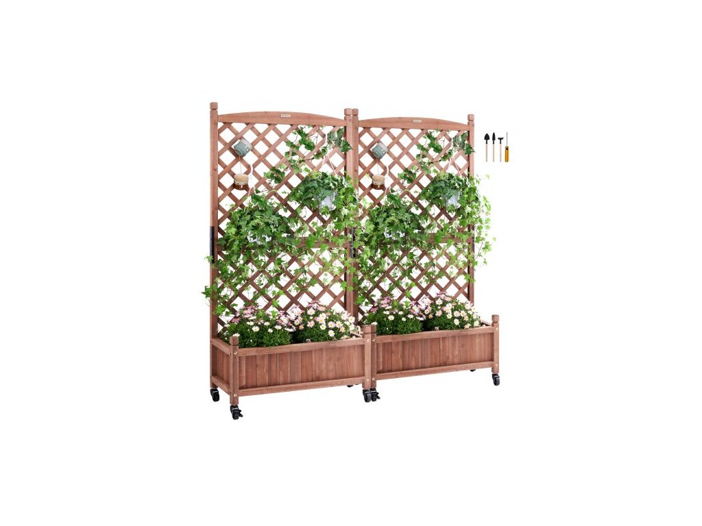 2dílný vyvýšený záhon s treláží, 152,4 x 33 x 156 cm venkovní vyvýšené dřevěné květináče s drenážními otvory, volně stojící truhlík s treláží pro popínavé rostliny, květiny do zahrady, na terasu, na balkón