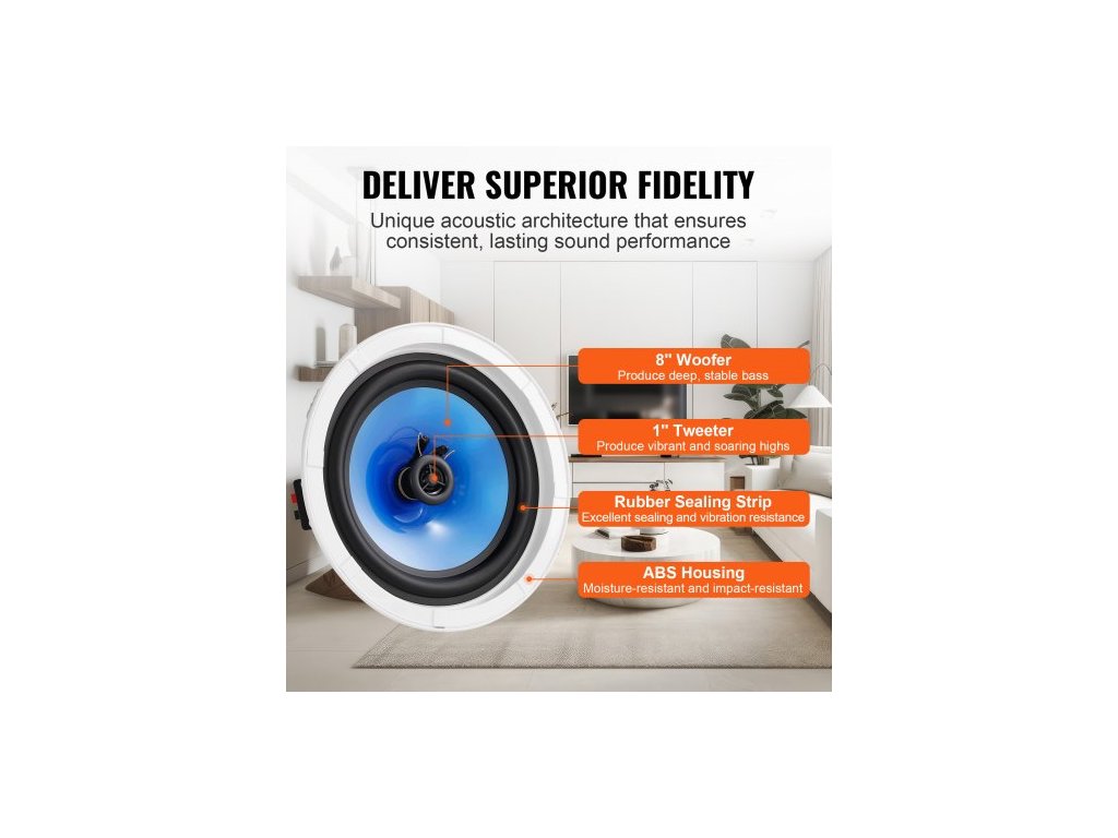2 ks stropních reproduktorů 8 palců/20,3 cm, 50wattové zapuštěné stropní a nástěnné reproduktory2 ks 8palcových stropních reproduktorů