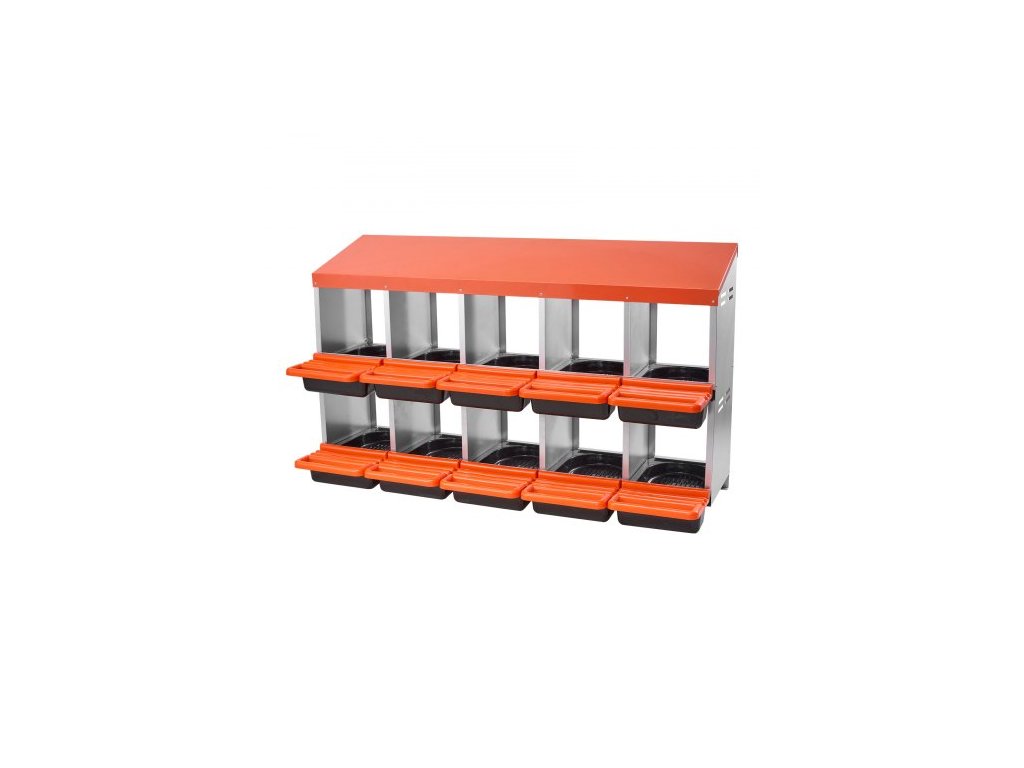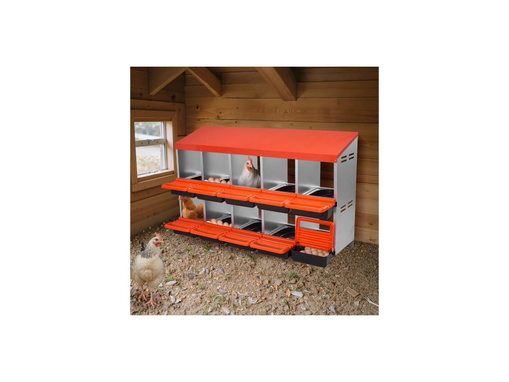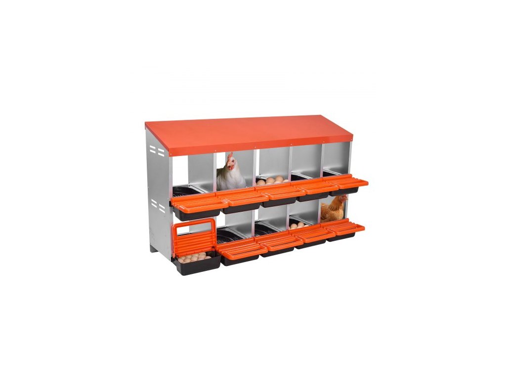 2patrové hnízdní budky pro kuřata, 10 přihrádek, kovové snáškové budky s ochrannými sběrnými víky, výsuvná hnízdní budka, snadná montáž, ideální pro slepice, kachny, kuřata a další drůbežProstorný design pro různá plemena