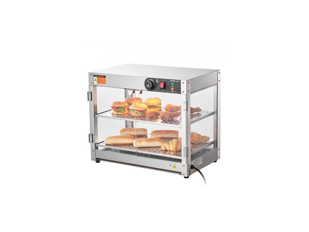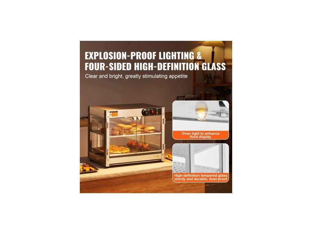 2patrový komerční ohřívač jídla, 800W ohřívač jídla s osvětlením pro vylepšení vystavení jídla, regulace teploty 30℃~85℃, velká kapacita 58L pro hamburgery, pizzu, chléb, smažené kuře