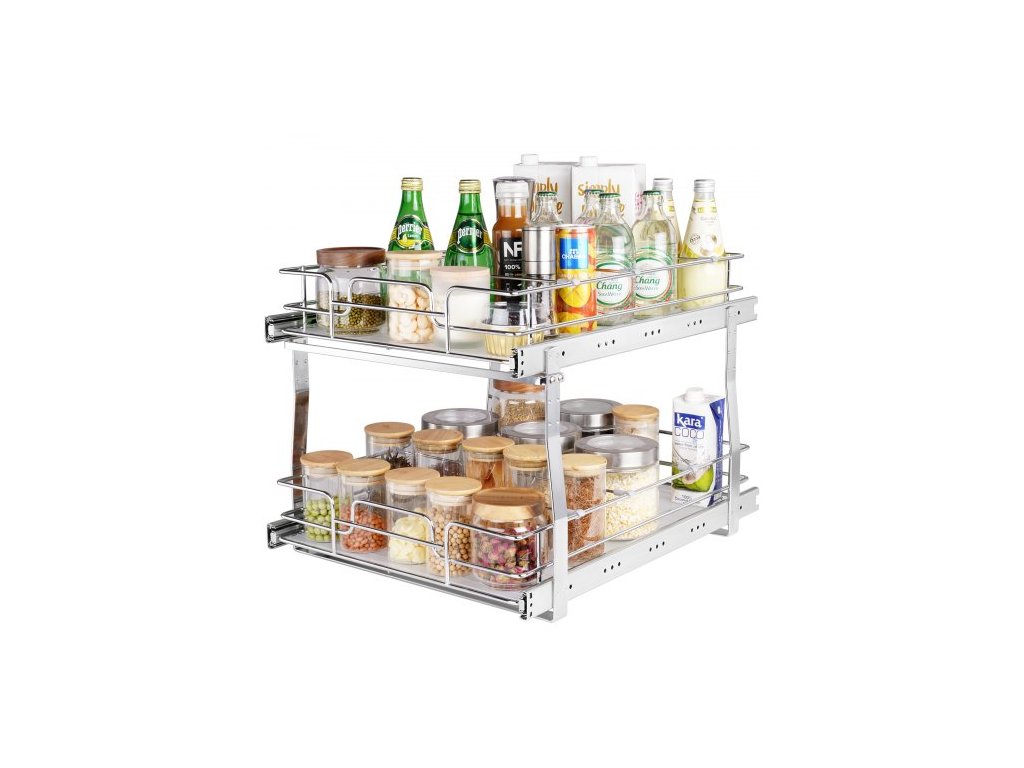 2patrový výsuvný organizér na skříňky 41 cm x 53,3 cm, odolné výsuvné police do spíže, chromované ocelové výsuvné zásuvky, úložný prostor v zásuvkách do kuchyňské linky, koupelny, pod umyvadloSladký design