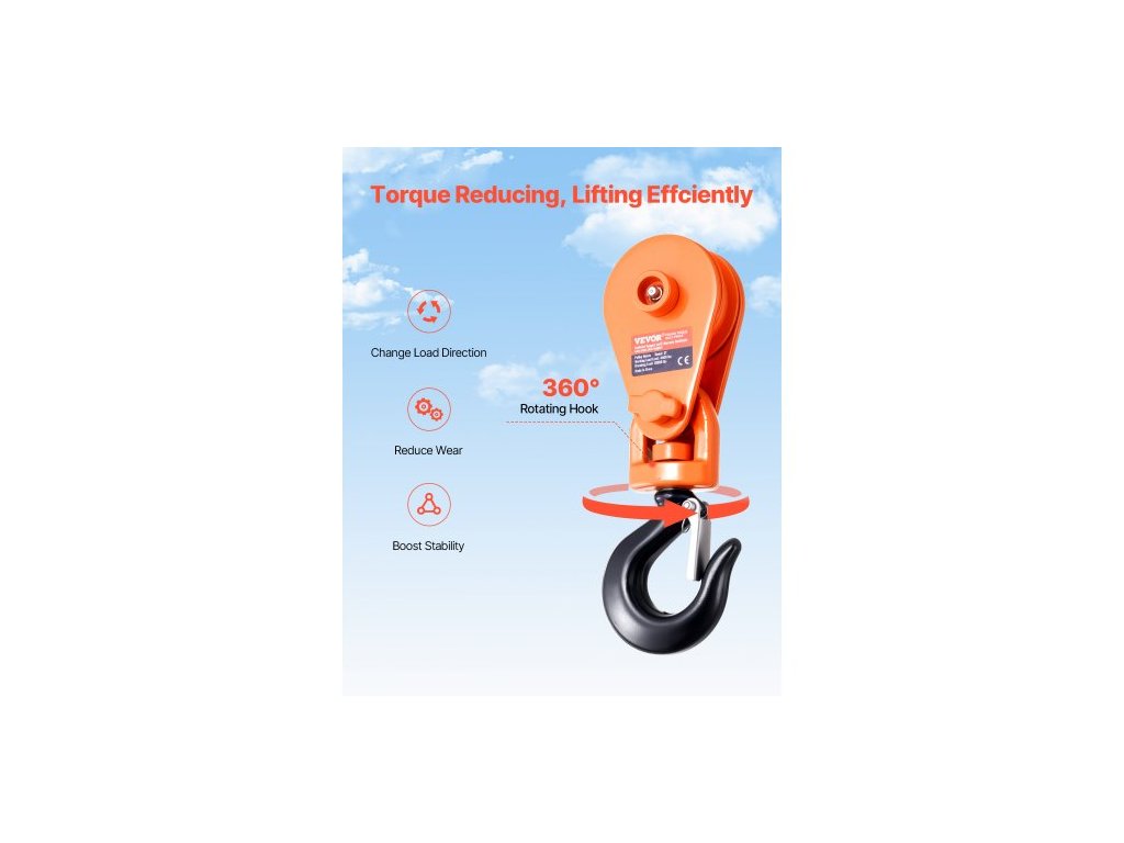 2tunový kladkostroj s otočným hákem, kladkou 3" a ocelovým lanem 3/8" palce, kladkou pro těžký kladkostroj o nosnosti 4400 liber pro odtahové a vyprošťovací operace na navijácích odtahových vozidel, odtahových vozidel a autoodtahů.