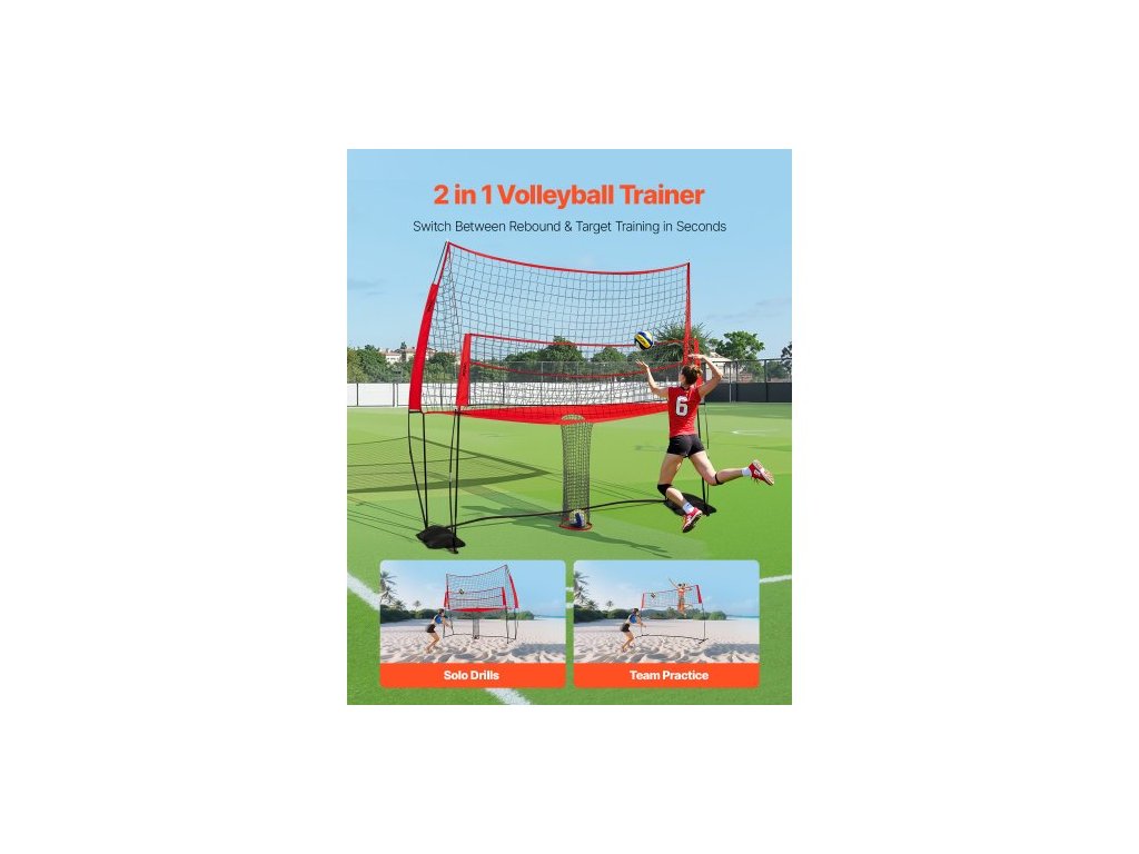 2v1 tréninková síť na volejbal, volně výškově nastavitelná cvičná pomůcka s vracením míče, přenosná síťová stanice, snadné nastavení pro použití na dvorku, uvnitř i venku, servírování, zlepšení přesnostiRychlé nastavení