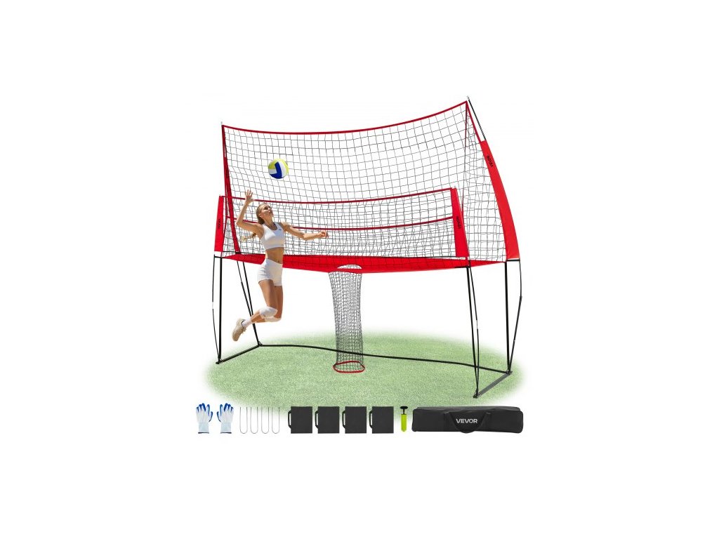 2v1 tréninková síť na volejbal, volně výškově nastavitelné cvičební vybavení s vracením míče, přenosná síťová stanice, snadné nastavení pro použití na zahradě, uvnitř i venku, servírování, zlepšení přesnosti