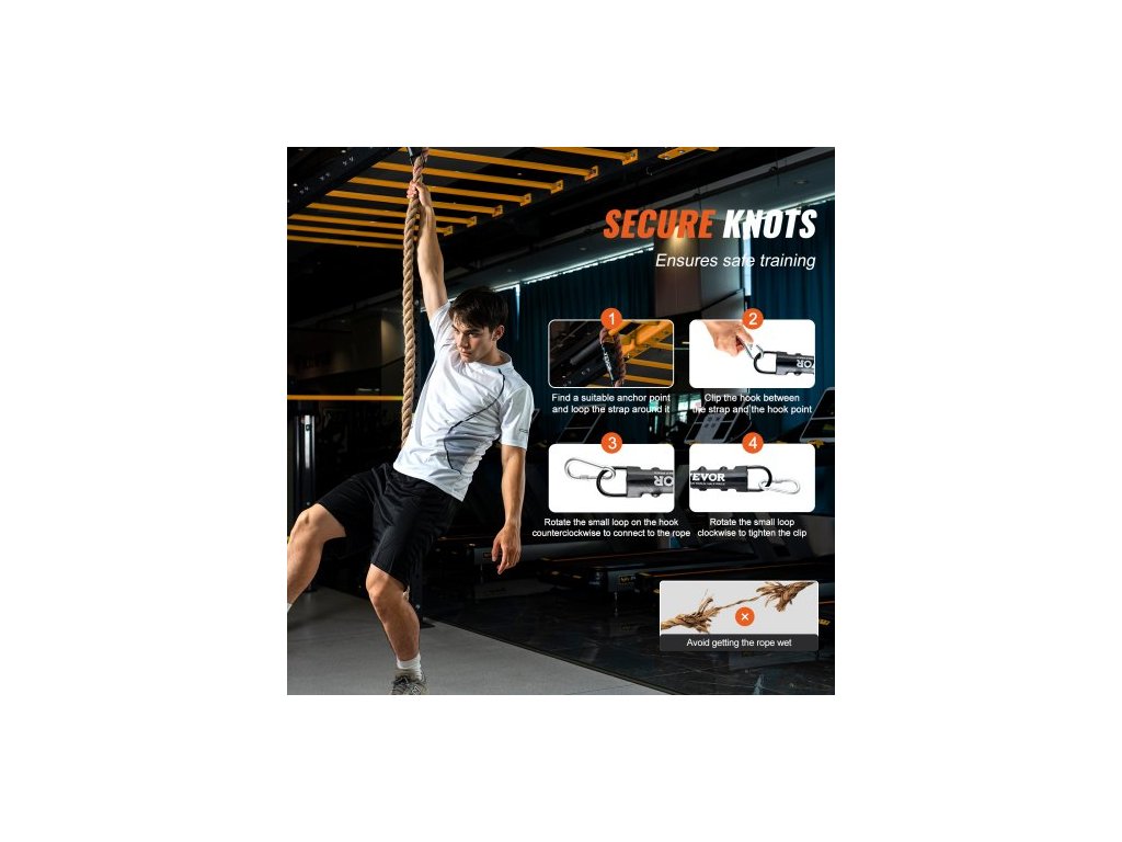 3,8 cm x 457,2 cm lezecké lano do posilovny, posilovací lano, domácí cvičeníOdolné proti oděru a tahu