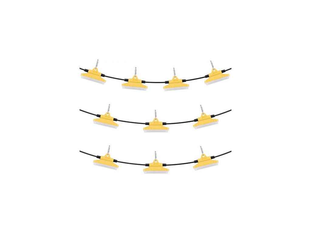 Celková délka: 100 stop/30500 mm,Množství žárovek: 10 ks,Rozteč žárovek: 10 stop/3050 mm,Barva: 5000-5500K,Číslo modelu položky: DL-999L-10-0.75EU,Světelný tok: 15000 lumenů,Rozměry: 5,35 × 3,23 × 3,23 palce/136 × 82 × 82 mm (jedna žárovka),Externí připojení: 10 žárovek pro sadu, propojitelných až 8 sad,Hmotnost netto: 7,27 3,3 kg (včetně veškerého příslušenství), Výkon: 150 W