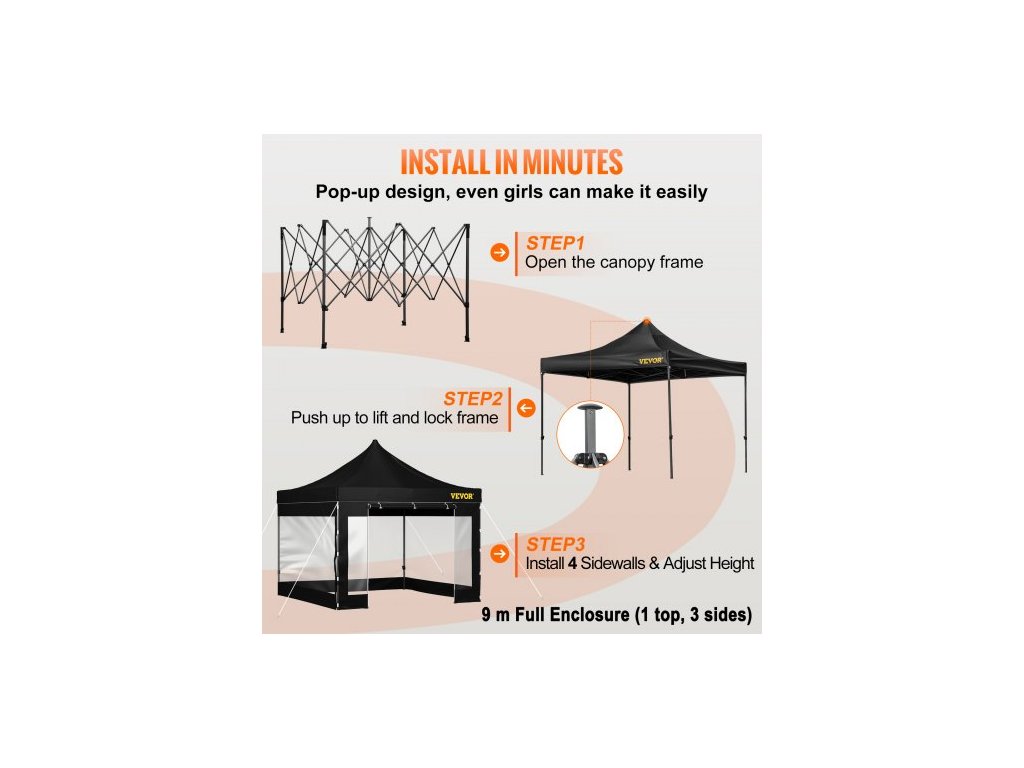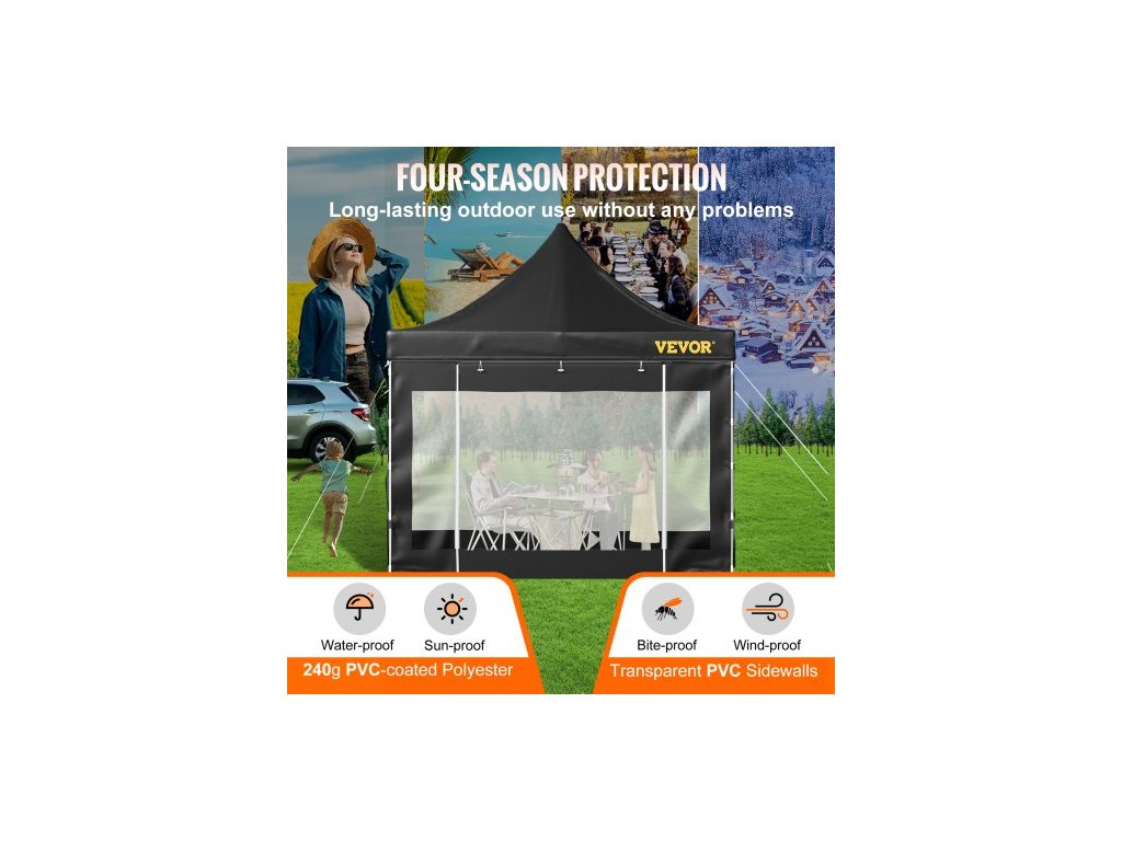 304,8 x 304,8 cm rozkládací stan s baldachýnem, venkovní altán s odnímatelnými bočními stěnami a taškou na kolečkách, UV odolný, vodotěsný, okamžitý přístřešek na párty, zahradu, dvorek, černýKvalita, kterou vidíte