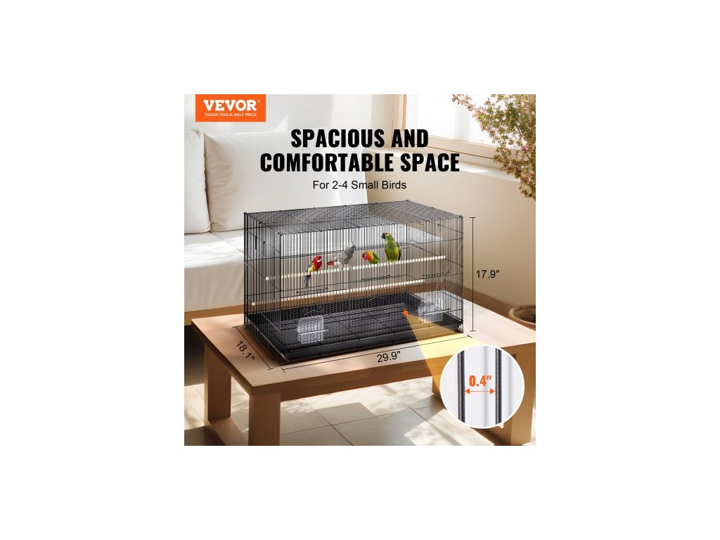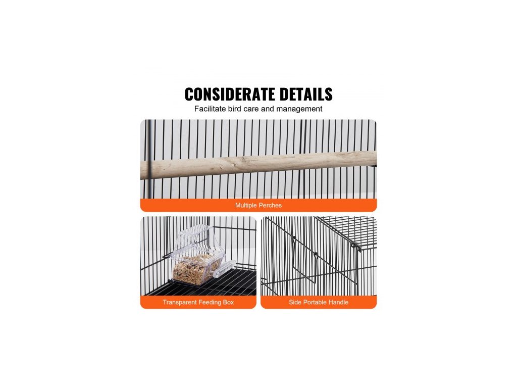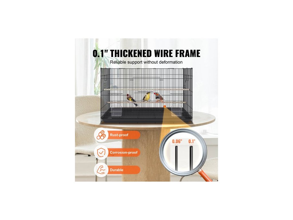 30palcová ptačí klec, kovová klece pro velké andulky korely, malé papoušky, hrdličky a kanárky, ptačí klec s pojízdným stojanem a tácemVysokopevnostní uhlíková ocel